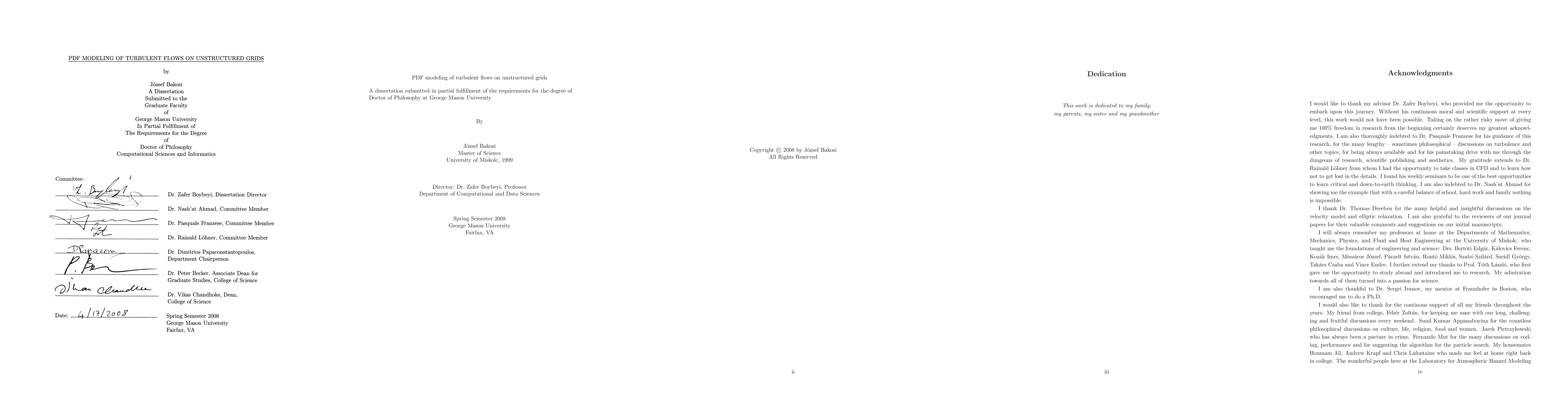 This paper proposes a PDF-based method for modeling turbulent flows on unstructured grids, employing Lagrangian particles to numerically integrate stochastic differential equations without closure assumptions. The methodology includes algorithms for efficient PDF transport equation solving, particle tracking, and performance optimization on multi-core architectures, showing promise for high-Reynolds-number incompressible turbulent flow simulations in complex geometries.