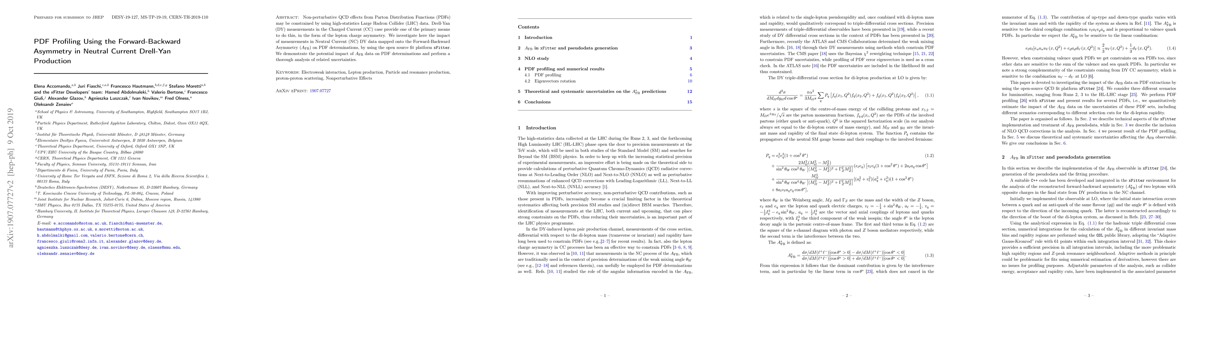 Non-perturbative QCD effects from Parton Distribution Functions (PDFs) may be constrained by using high-statistics Large Hadron Collider (LHC) data. Drell-Yan (DY) measurements in the Charged Current (CC) case provide one of the primary means to do this, in the form of the lepton charge asymmetry. We investigate here the impact of measurements in Neutral Current (NC) DY data mapped onto the Forward-Backward Asymmetry ($A_{\rm FB}$) on PDF determinations, by using the open source fit platform {\tt{xFitter}}. We demonstrate the potential impact of $A_{\rm FB}$ data on PDF determinations and perform a thorough analysis of related uncertainties.