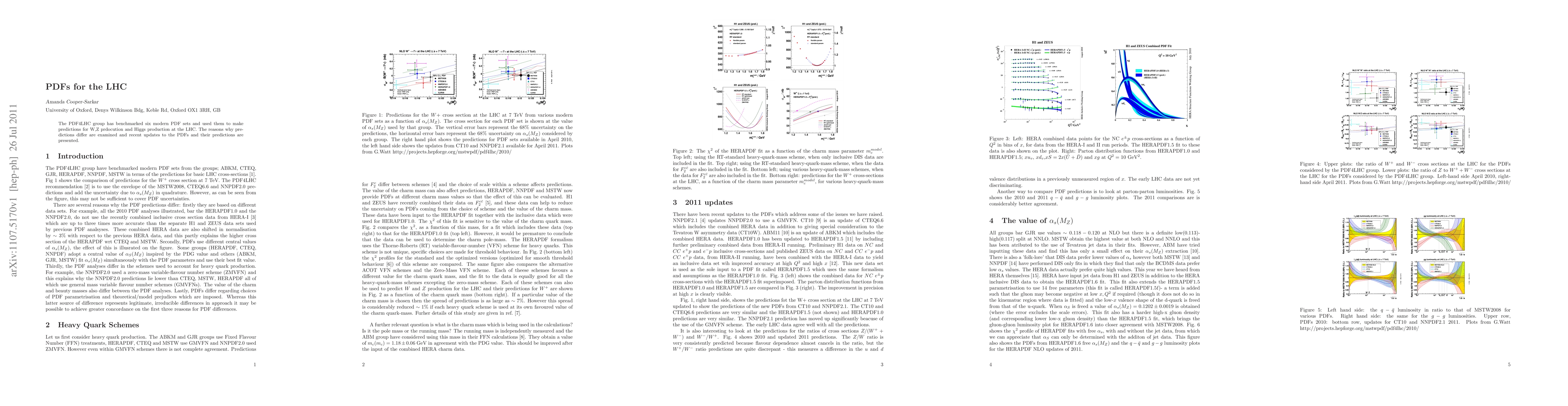 The PDF4LHC group evaluated six modern parton distribution functions (PDFs) to predict W, Z, and Higgs production at the LHC, analyzing the discrepancies among the predictions and presenting recent updates to the PDFs and their associated forecasts.
