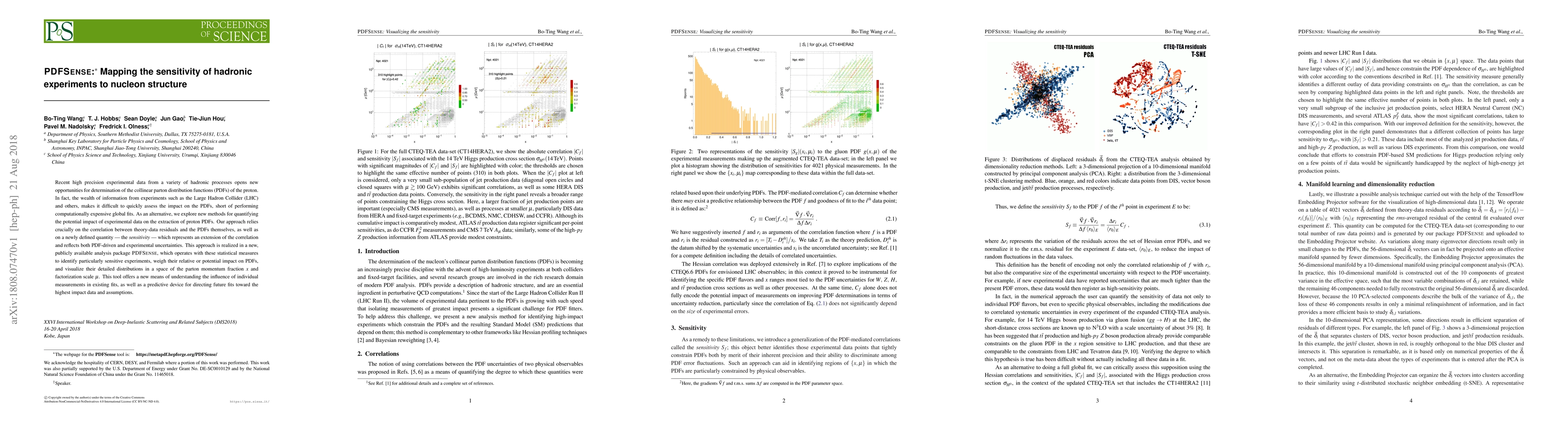 Recent high precision experimental data from a variety of hadronic processes opens new opportunities for determination of the collinear parton distribution functions (PDFs) of the proton. In fact, the wealth of information from experiments such as the Large Hadron Collider (LHC) and others, makes it difficult to quickly assess the impact on the PDFs, short of performing computationally expensive global fits. As an alternative, we explore new methods for quantifying the potential impact of experimental data on the extraction of proton PDFs. Our approach relies crucially on the correlation between theory-data residuals and the PDFs themselves, as well as on a newly defined quantity --- the sensitivity --- which represents an extension of the correlation and reflects both PDF-driven and experimental uncertainties. This approach is realized in a new, publicly available analysis package PDFSense, which operates with these statistical measures to identify particularly sensitive experiments, weigh their relative or potential impact on PDFs, and visualize their detailed distributions in a space of the parton momentum fraction x and factorization scale \mu. This tool offers a new means of understanding the influence of individual measurements in existing fits, as well as a predictive device for directing future fits toward the highest impact data and assumptions.