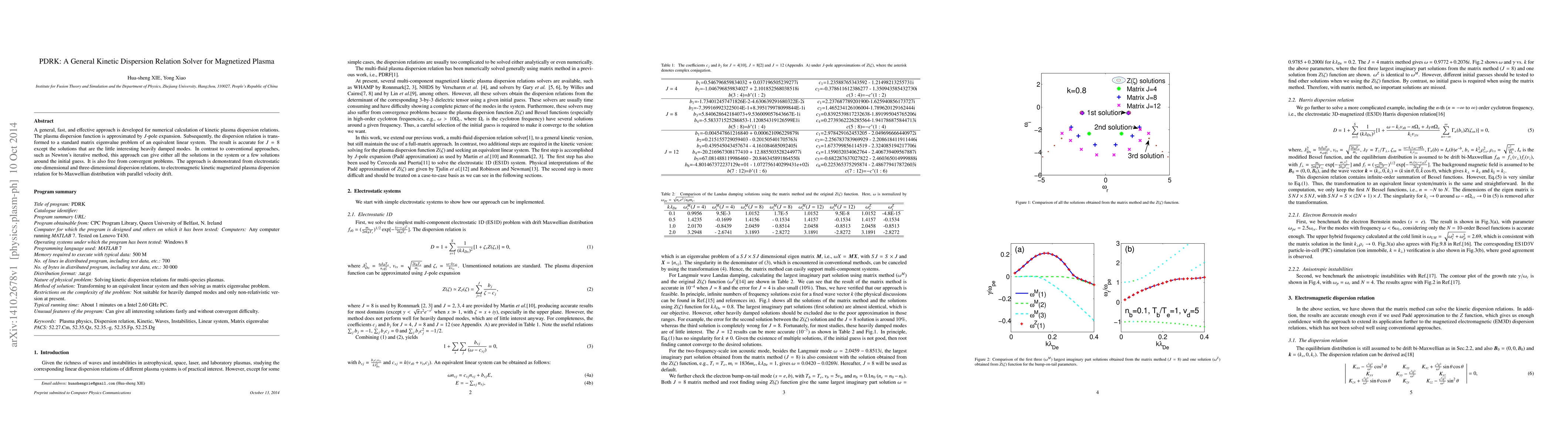 This paper introduces a novel method for solving kinetic plasma dispersion relations using $J$-pole expansion and matrix eigenvalue problems, offering a fast and accurate alternative to conventional iterative methods, and demonstrating its effectiveness in both electrostatic and electromagnetic scenarios.