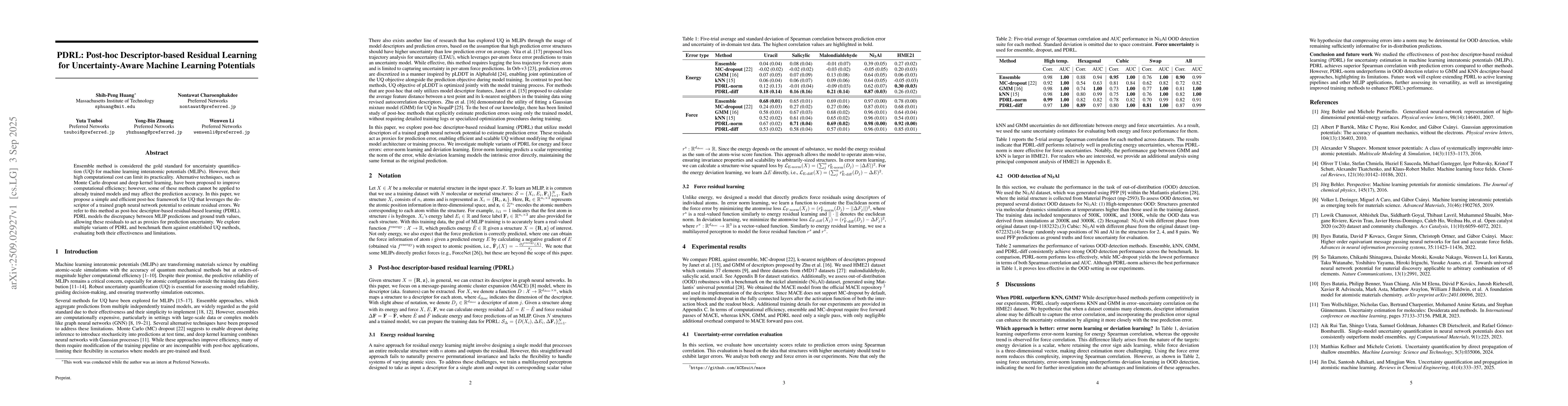 Ensemble method is considered the gold standard for uncertainty quantification (UQ) for machine learning interatomic potentials (MLIPs). However, their high computational cost can limit its practicality. Alternative techniques, such as Monte Carlo dropout and deep kernel learning, have been proposed to improve computational efficiency; however, some of these methods cannot be applied to already trained models and may affect the prediction accuracy. In this paper, we propose a simple and efficient post-hoc framework for UQ that leverages the descriptor of a trained graph neural network potential to estimate residual errors. We refer to this method as post-hoc descriptor-based residual-based learning (PDRL). PDRL models the discrepancy between MLIP predictions and ground truth values, allowing these residuals to act as proxies for prediction uncertainty. We explore multiple variants of PDRL and benchmark them against established UQ methods, evaluating both their effectiveness and limitations.