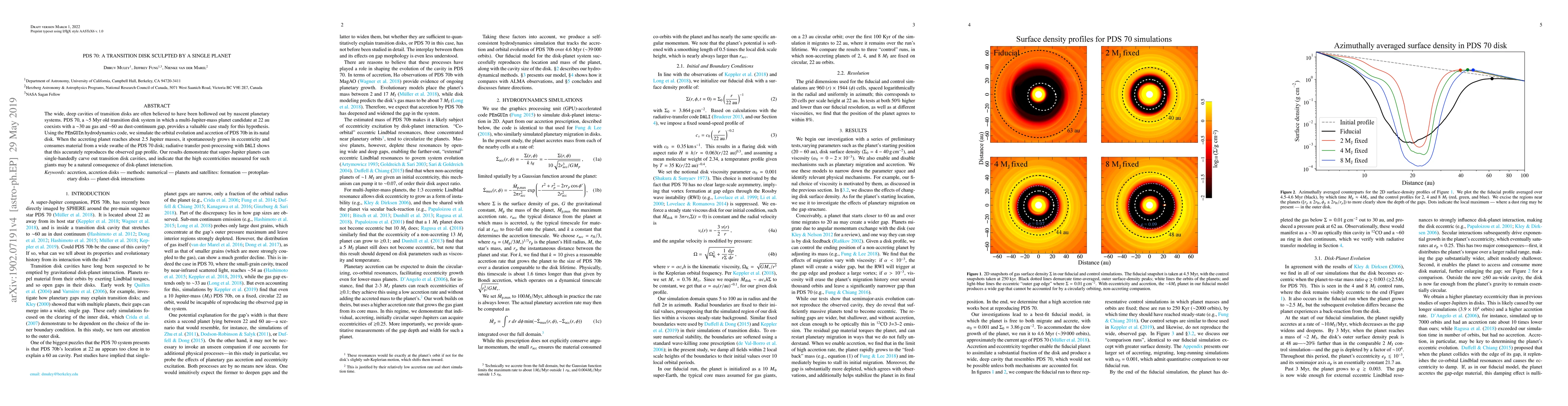 This paper investigates how the planet PDS 70b, a multi-Jupiter-mass candidate, shapes its surrounding transition disk through gravitational interactions, carving out gas and dust gaps. Simulations show that as the planet grows, it naturally develops high eccentricities, effectively sculpting the disk's cavities.