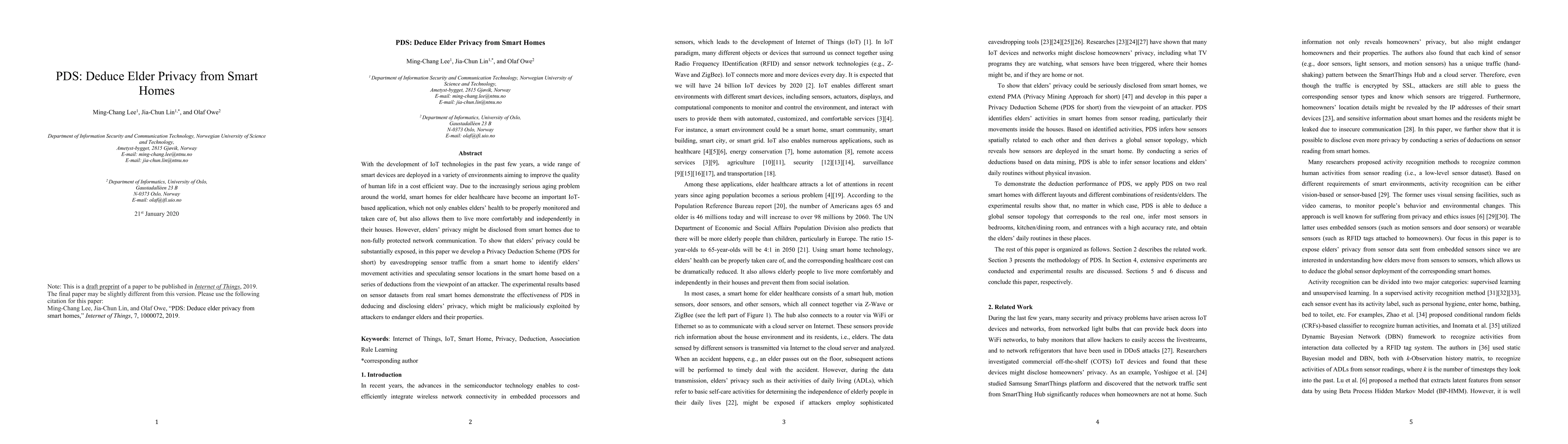 This paper develops a Privacy Deduction Scheme (PDS) to demonstrate how elder privacy can be compromised in smart homes through unprotected IoT network communication. Experimental results show PDS's effectiveness in deducing elders' movement activities and speculating sensor locations, highlighting the potential for malicious exploitation.