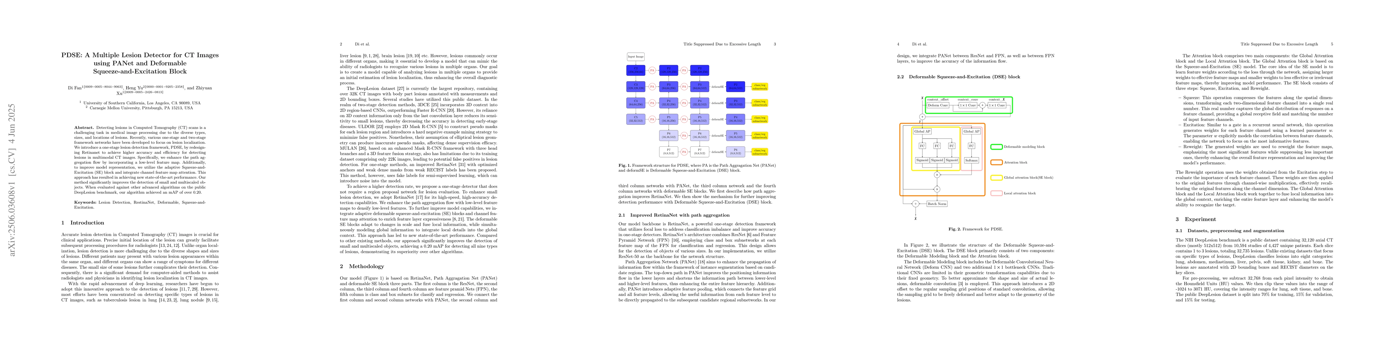 The research introduces PDSE, a one-stage lesion detection framework based on Retinanet, enhanced with a low-level feature map in path aggregation flow and a deformable Squeeze-and-Excitation (SE) block for improved representation in multimodal CT images.