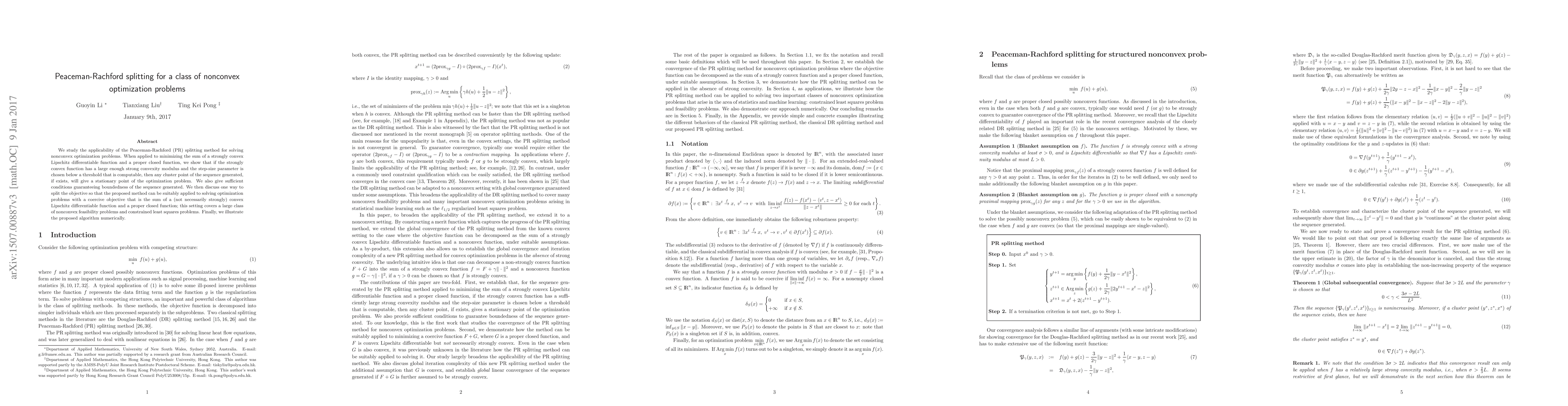 Researchers develop a new method for solving nonconvex optimization problems using Peaceman-Rachford splitting, showing that it can find stationary points under certain conditions.