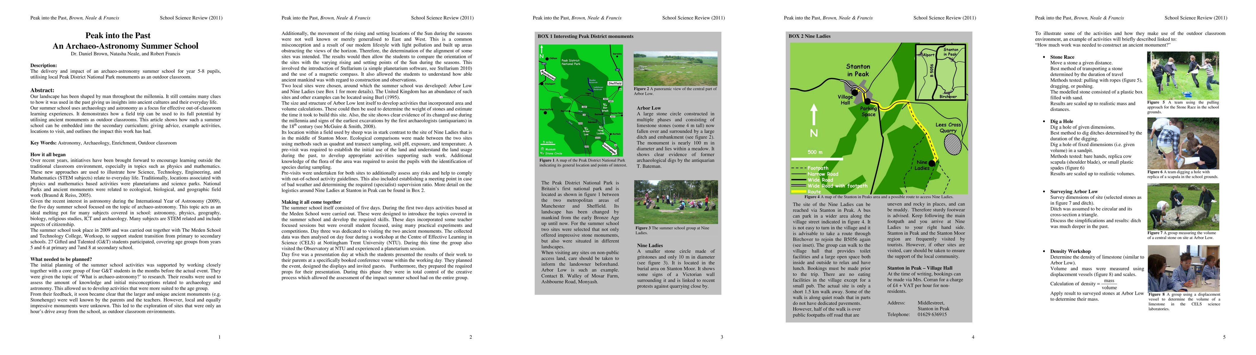 Our landscape has been shaped by man throughout the millennia. It still contains many clues to how it was used in the past giving us insights into ancient cultures and their everyday life. Our summer school uses archaeology and astronomy as a focus for effective out-of-classroom learning experiences. It demonstrates how a field trip can be used to its full potential by utilising ancient monuments as outdoor classrooms. This article shows how such a summer school can be embedded into the secondary curriculum; giving advice, example activities, locations to visit, and outlines the impact this work has had.