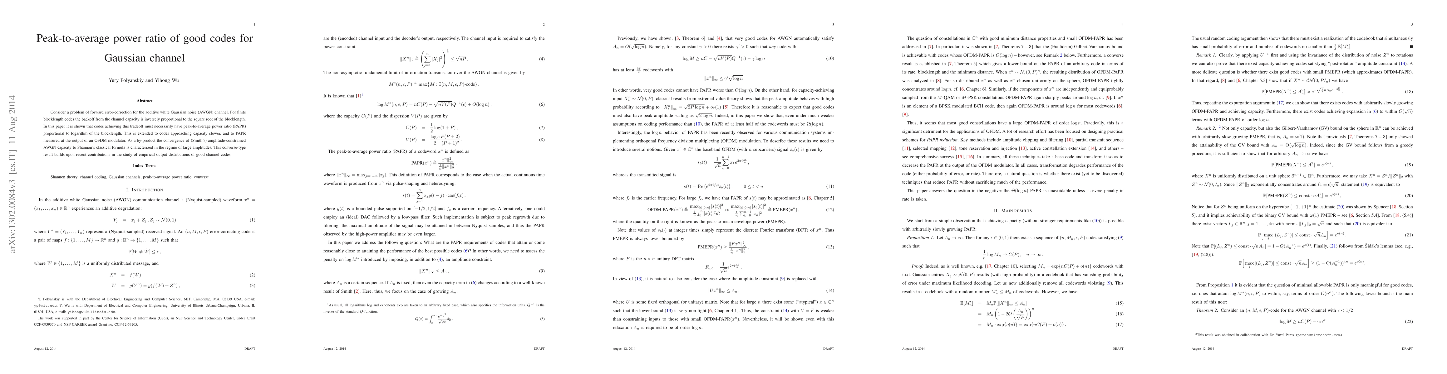 Consider a problem of forward error-correction for the additive white Gaussian noise (AWGN) channel. For finite blocklength codes the backoff from the channel capacity is inversely proportional to the square root of the blocklength. In this paper it is shown that codes achieving this tradeoff must necessarily have peak-to-average power ratio (PAPR) proportional to logarithm of the blocklength. This is extended to codes approaching capacity slower, and to PAPR measured at the output of an OFDM modulator. As a by-product the convergence of (Smith's) amplitude-constrained AWGN capacity to Shannon's classical formula is characterized in the regime of large amplitudes. This converse-type result builds upon recent contributions in the study of empirical output distributions of good channel codes.