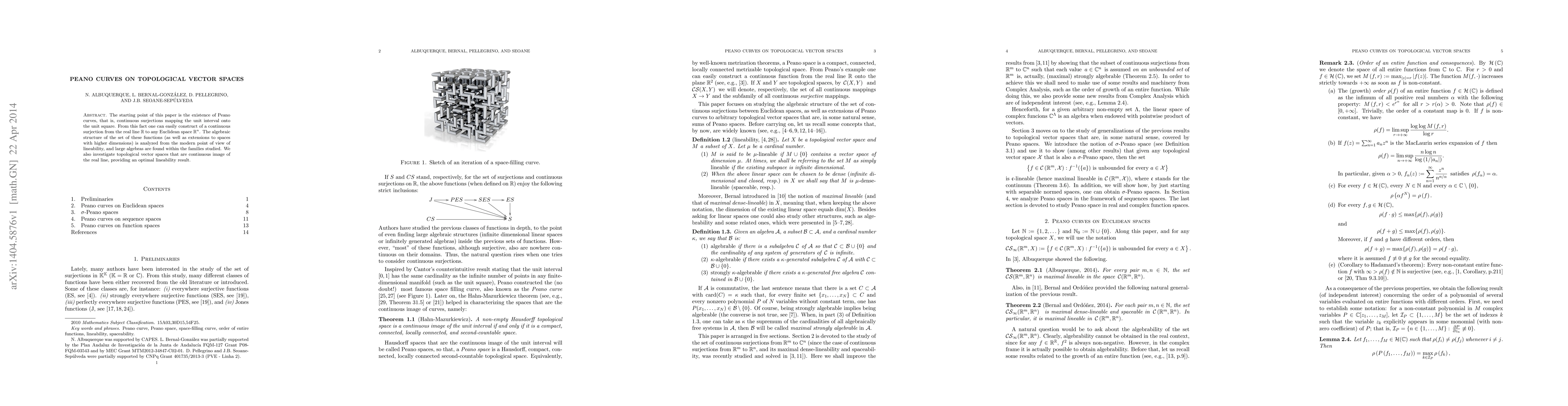 This paper explores Peano curves, continuous surjections from the unit interval onto the unit square, and extends these to $\mathbb{R}$ onto $\mathbb{R}^n$. It investigates the lineability and large algebras of these functions within topological vector spaces, achieving optimal lineability results.