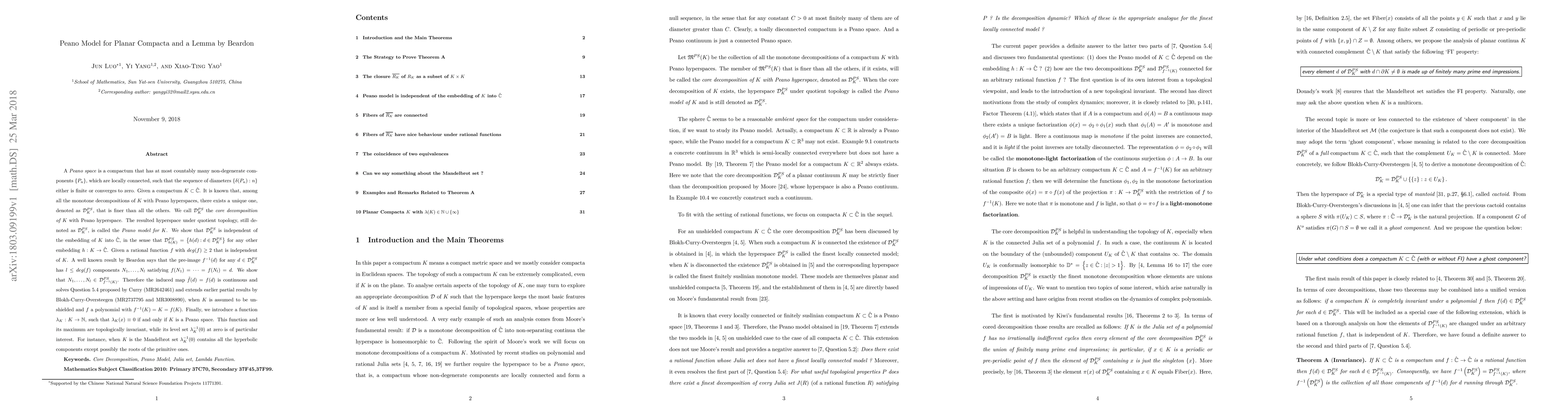 The paper introduces a Peano model for planar compacta, showing that the core decomposition is independent of embedding and can be used to study properties like invariance under rational maps.