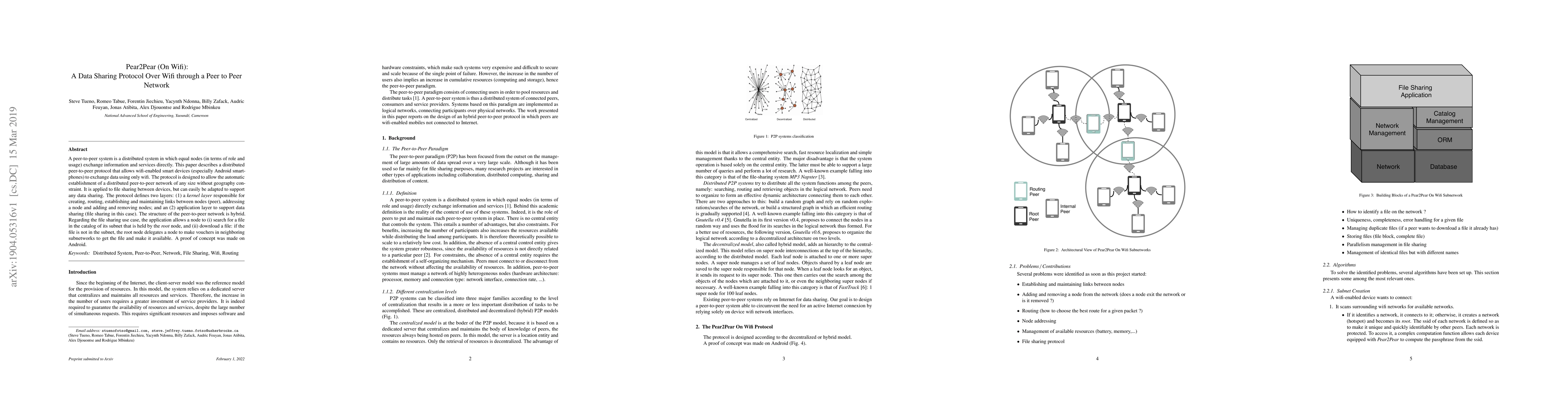 This paper introduces a peer-to-peer data sharing protocol for wifi-enabled smart devices, allowing automatic establishment of a geographically unconstrained network. The protocol features a hybrid network structure with a kernel layer for link management and an application layer for file sharing.