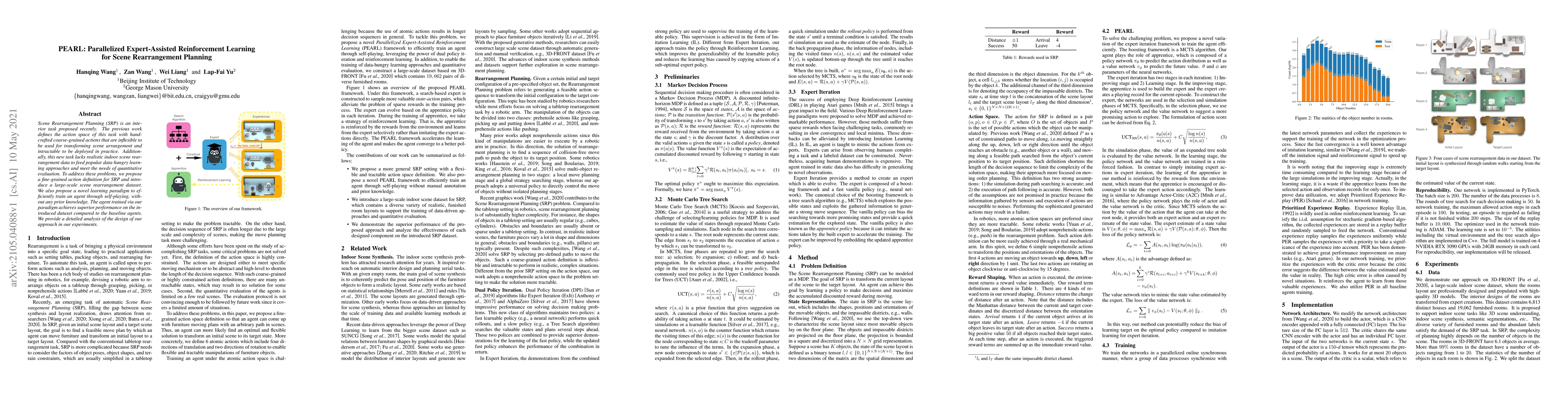 The paper proposes a fine-grained action definition for Scene Rearrangement Planning (SRP) and introduces a large-scale dataset to address the lack of realistic data. It presents a novel learning paradigm for training an agent through self-play, achieving superior performance compared to baseline agents.