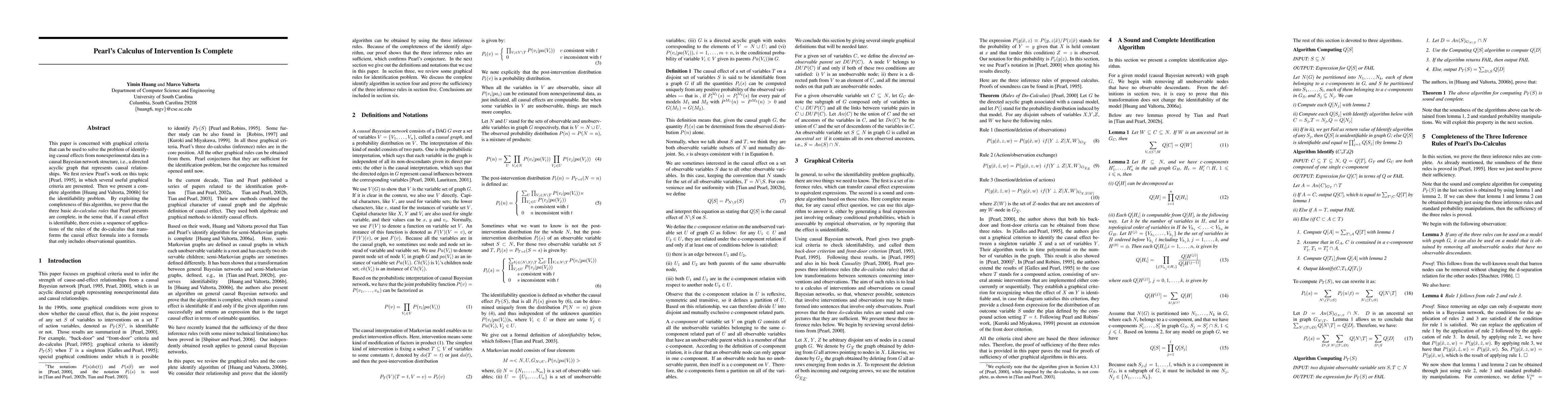 This paper is concerned with graphical criteria that can be used to solve the problem of identifying casual effects from nonexperimental data in a causal Bayesian network structure, i.e., a directed acyclic graph that represents causal relationships. We first review Pearl's work on this topic [Pearl, 1995], in which several useful graphical criteria are presented. Then we present a complete algorithm [Huang and Valtorta, 2006b] for the identifiability problem. By exploiting the completeness of this algorithm, we prove that the three basic do-calculus rules that Pearl presents are complete, in the sense that, if a causal effect is identifiable, there exists a sequence of applications of the rules of the do-calculus that transforms the causal effect formula into a formula that only includes observational quantities.
