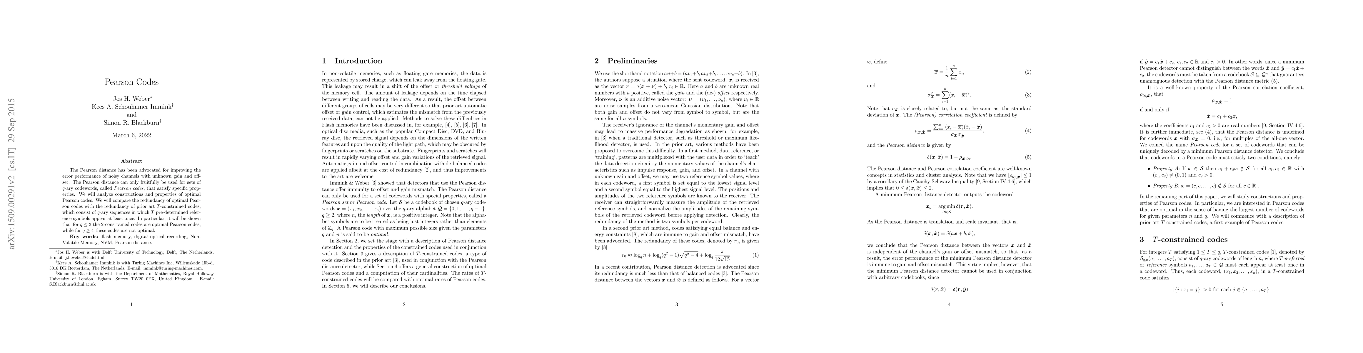 The Pearson distance has been advocated for improving the error performance of noisy channels with unknown gain and offset. The Pearson distance can only fruitfully be used for sets of $q$-ary codewords, called Pearson codes, that satisfy specific properties. We will analyze constructions and properties of optimal Pearson codes. We will compare the redundancy of optimal Pearson codes with the redundancy of prior art $T$-constrained codes, which consist of $q$-ary sequences in which $T$ pre-determined reference symbols appear at least once. In particular, it will be shown that for $q\le 3$ the $2$-constrained codes are optimal Pearson codes, while for $q\ge 4$ these codes are not optimal.