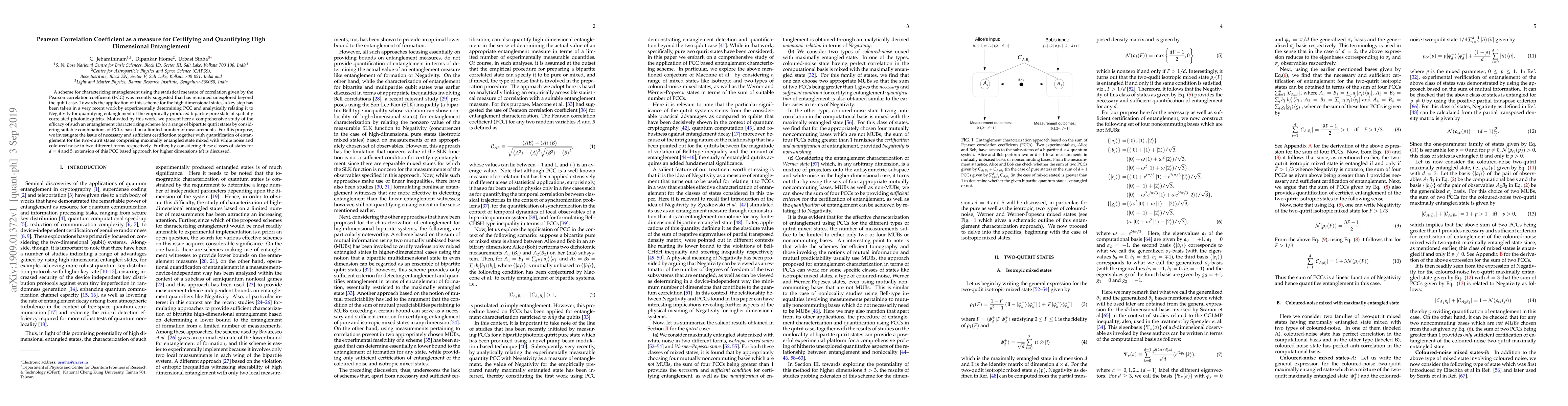 This paper explores the use of the Pearson Correlation Coefficient (PCC) for characterizing and quantifying high-dimensional entanglement, extending beyond qubits to qutrits and higher dimensions. It investigates the efficacy of PCC-based schemes for certifying and quantifying entanglement in mixed states of qutrits, including those with noise, and discusses its applicability for higher dimensions.