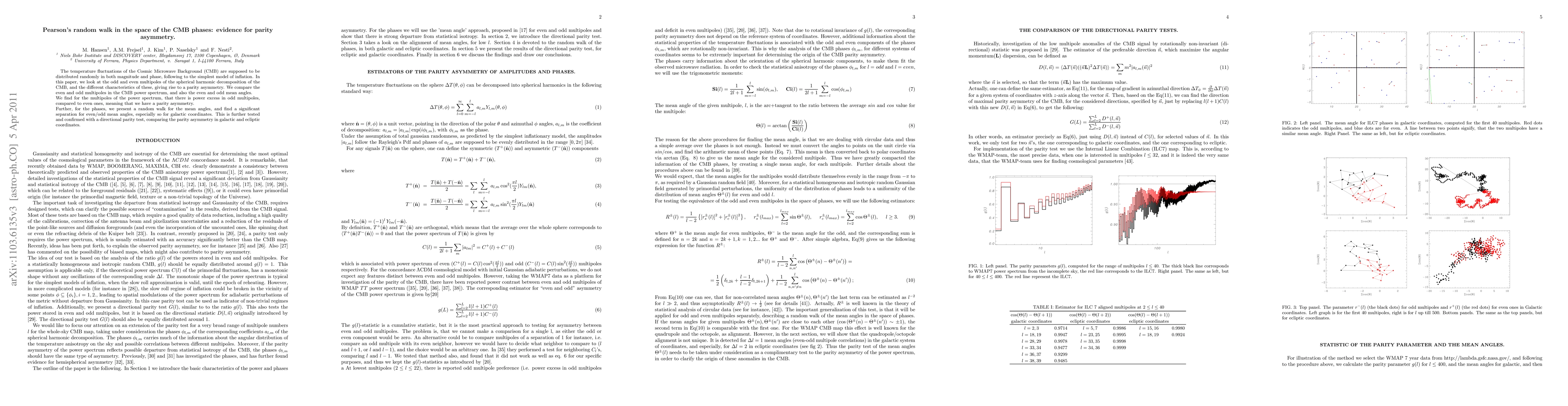 The temperature fluctuations of the Cosmic Microwave Background (CMB) are supposed to be distributed randomly in both magnitude and phase, following to the simplest model of inflation. In this paper, we look at the odd and even multipoles of the spherical harmonic decomposition of the CMB, and the different characteristics of these, giving rise to a parity asymmetry. We compare the even and odd multipoles in the CMB power spectrum, and also the even and odd mean angles. We find for the multipoles of the power spectrum, that there is power excess in odd multipoles, compared to even ones, meaning that we have a parity asymmetry. Further, for the phases, we present a random walk for the mean angles, and find a significant separation for even/odd mean angles, especially so for galactic coordinates. This is further tested and confirmed with a directional parity test, comparing the parity asymmetry in galactic and ecliptic coordinates.