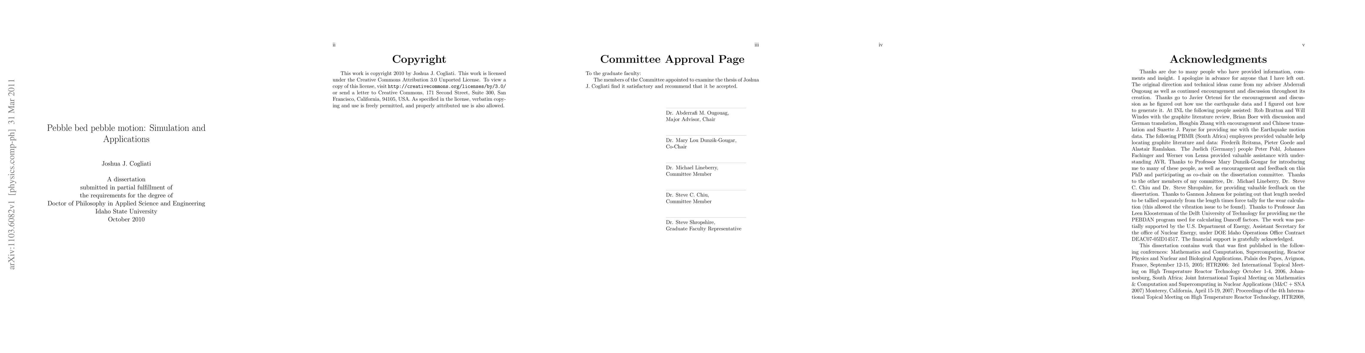 This dissertation introduces PEBBLES, a simulation method for modeling the motion of pebbles in a Pebble Bed Reactor (PBR), incorporating gravitational and contact forces. The PEBBLES simulator is used to assess earthquake impacts, calculate packing fractions, and determine pebble wear and forces on reactor walls, enhancing PBR optimization.