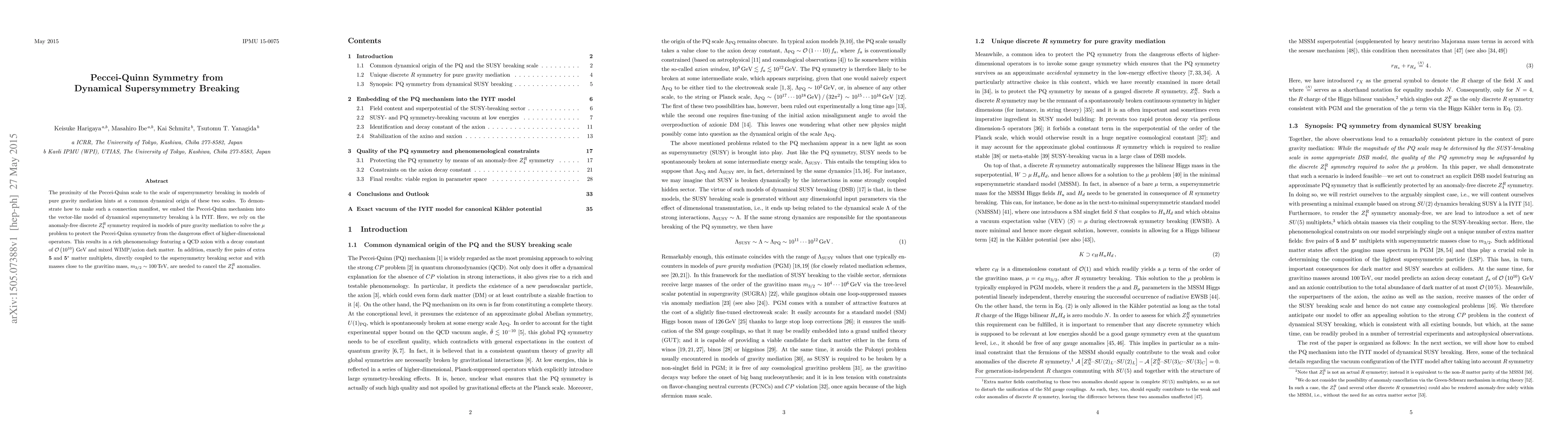 The proximity of the Peccei-Quinn scale to the scale of supersymmetry breaking in models of pure gravity mediation hints at a common dynamical origin of these two scales. To demonstrate how to make such a connection manifest, we embed the Peccei-Quinn mechanism into the vector-like model of dynamical supersymmetry breaking a la IYIT. Here, we rely on the anomaly-free discrete Z4R symmetry required in models of pure gravity mediation to solve the mu problem to protect the Peccei-Quinn symmetry from the dangerous effect of higher-dimensional operators. This results in a rich phenomenology featuring a QCD axion with a decay constant of O(10^10) GeV and mixed WIMP/axion dark matter. In addition, exactly five pairs of extra 5 and 5* matter multiplets, directly coupled to the supersymmetry breaking sector and with masses close to the gravitino mass, m3/2 ~ 100 TeV, are needed to cancel the Z4R anomalies.