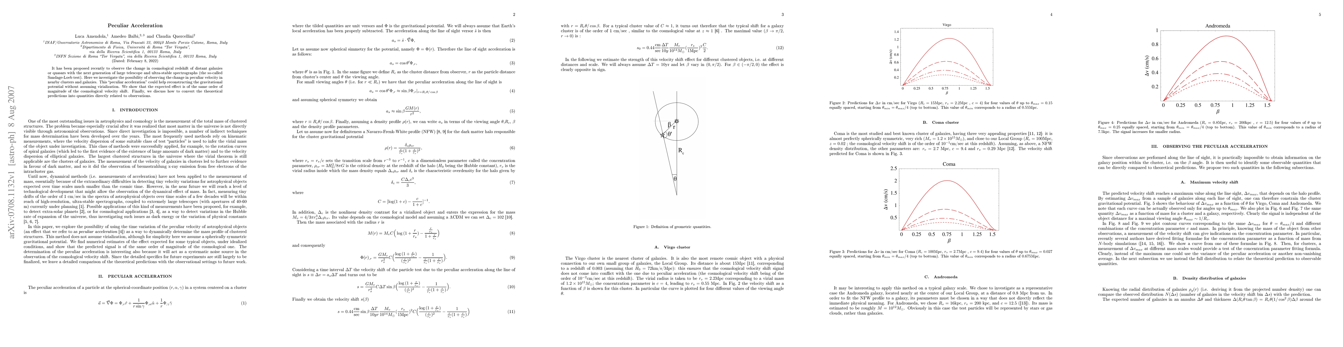 It has been proposed recently to observe the change in cosmological redshift of distant galaxies or quasars with the next generation of large telescope and ultra-stable spectrographs (the so-called Sandage-Loeb test). Here we investigate the possibility of observing the change in peculiar velocity in nearby clusters and galaxies. This ``peculiar acceleration'' could help reconstructing the gravitational potential without assuming virialization. We show that the expected effect is of the same order of magnitude of the cosmological velocity shift. Finally, we discuss how to convert the theoretical predictions into quantities directly related to observations.