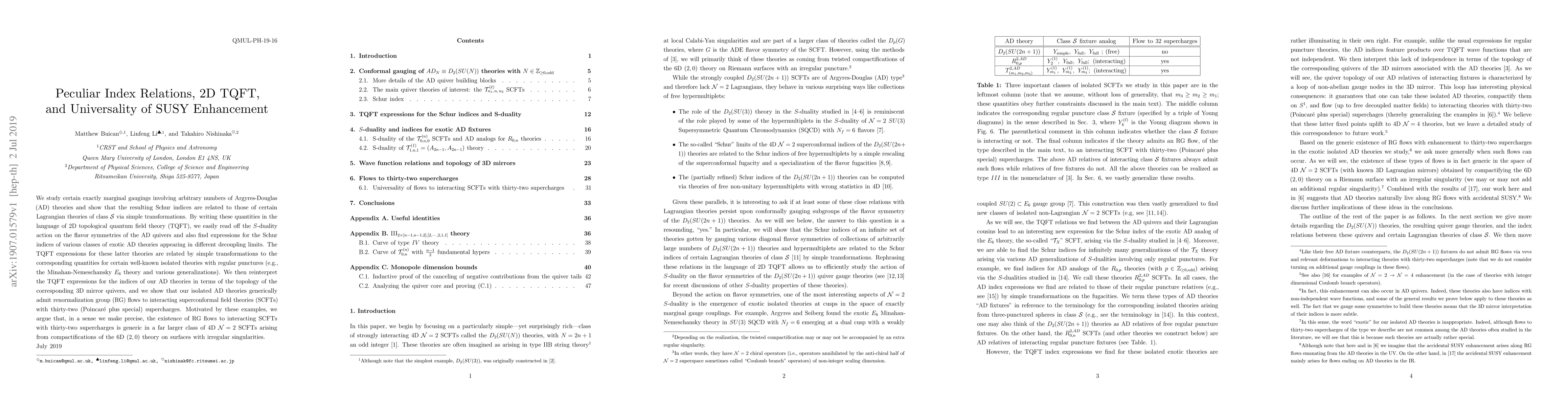 We study certain exactly marginal gaugings involving arbitrary numbers of Argyres-Douglas (AD) theories and show that the resulting Schur indices are related to those of certain Lagrangian theories of class $\mathcal{S}$ via simple transformations. By writing these quantities in the language of 2D topological quantum field theory (TQFT), we easily read off the $S$-duality action on the flavor symmetries of the AD quivers and also find expressions for the Schur indices of various classes of exotic AD theories appearing in different decoupling limits. The TQFT expressions for these latter theories are related by simple transformations to the corresponding quantities for certain well-known isolated theories with regular punctures (e.g., the Minahan-Nemeschansky $E_6$ theory and various generalizations). We then reinterpret the TQFT expressions for the indices of our AD theories in terms of the topology of the corresponding 3D mirror quivers, and we show that our isolated AD theories generically admit renormalization group (RG) flows to interacting superconformal field theories (SCFTs) with thirty-two (Poincar\'e plus special) supercharges. Motivated by these examples, we argue that, in a sense we make precise, the existence of RG flows to interacting SCFTs with thirty-two supercharges is generic in a far larger class of 4D $\mathcal{N}=2$ SCFTs arising from compactifications of the 6D $(2,0)$ theory on surfaces with irregular singularities.
