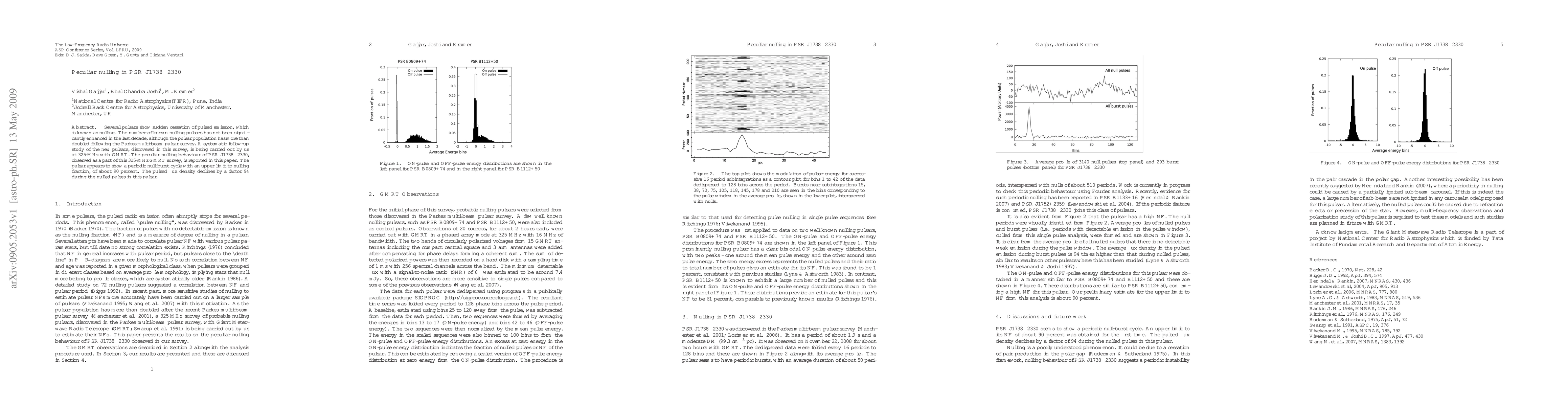 Several pulsars show sudden cessation of pulsed emission, which is known as nulling. The number of known nulling pulsars has not been significantly enhanced in the last decade, although the pulsar population has more than doubled following the Parkes multi-beam pulsar survey. A systematic follow-up study of the new pulsars, discovered in this survey, is being carried out by us at 325-MHz with GMRT. The peculiar nulling behaviour of PSR J1738-2330, observed as a part of this 325-MHz GMRT survey, is reported in this paper. The pulsar appears to show a periodic null-burst cycle with an upper limit to nulling fraction, of about 90 percent. The pulsed flux density declines by a factor 94 during the nulled pulses in this pulsar.