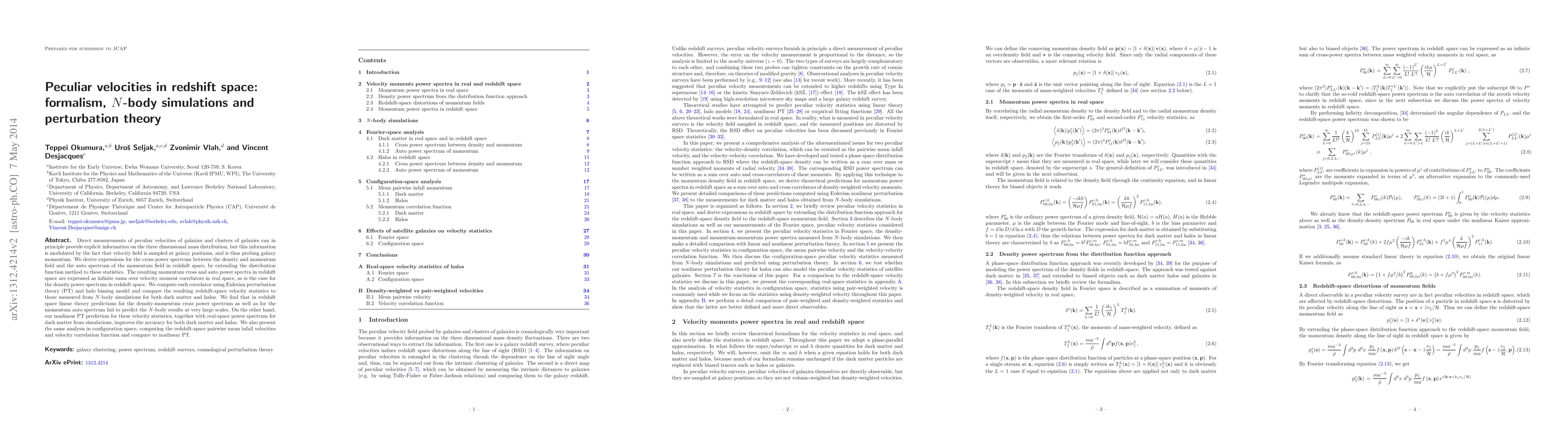 The paper presents expressions for the momentum cross and auto power spectra in redshift space as infinite sums over velocity moment correlators in real space, extending the distribution function method.