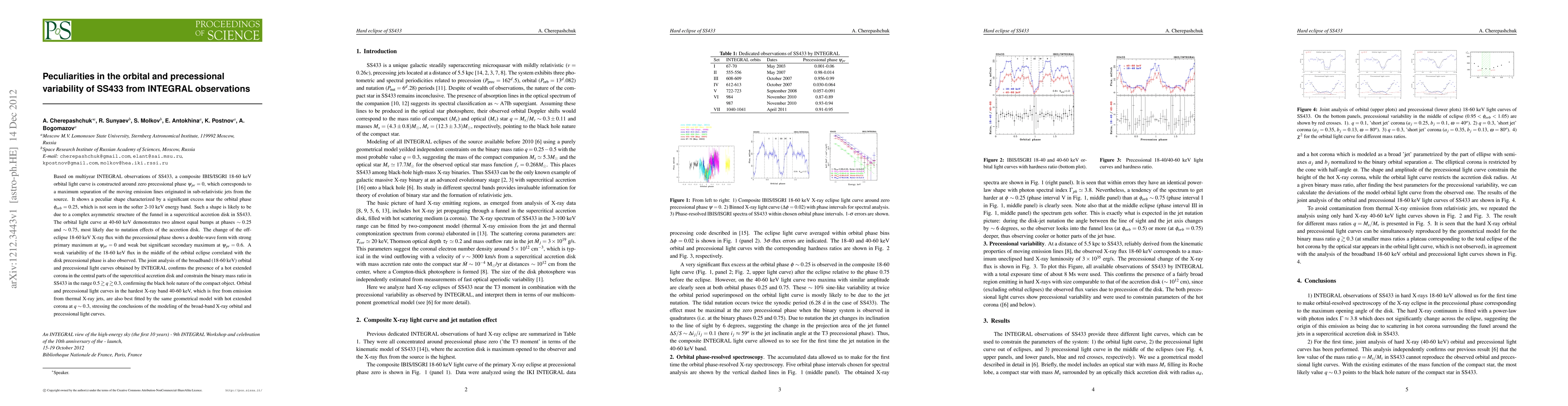 Based on multiyear INTEGRAL observations of SS433, a composite IBIS/ISGRI 18-60 keV orbital light curve is constructed around zero precessional phase $\psi_{pr}= 0$. It shows a peculiar shape characterized by a significant excess near the orbital phase $\phi_{orb}= 0.25$, which is not seen in the softer 2-10 keV energy band. Such a shape is likely to be due to a complex asymmetric structure of the funnel in a supercritical accretion disk in SS433. The orbital light curve at 40-60 keV demonstrates two almost equal bumps at phases $\sim 0.25$ and $\sim 0.75$, most likely due to nutation effects of the accretion disk. The change of the off-eclipse 18-60 keV X-ray flux with the precessional phase shows a double-wave form with strong primary maximum at $\psi_{pr}= 0$ and weak but significant secondary maximum at $\psi_{pr}= 0.6$. A weak variability of the 18-60 keV flux in the middle of the orbital eclipse correlated with the disk precessional phase is also observed. The joint analysis of the broadband (18-60 keV) orbital and precessional light curves obtained by INTEGRAL confirms the presence of a hot extended corona in the central parts of the supercritical accretion disk and constrain the binary mass ratio in SS433 in the range $0.5\gtrsim q\gtrsim 0.3$, confirming the black hole nature of the compact object. Orbital and precessional light curves in the hardest X-ray band 40-60 keV, which is free from emission from thermal X-ray jets, are also best fitted by the same geometrical model with hot extended corona at $q\sim 0.3$, stressing the conclusions of the modeling of the broad-band X-ray orbital and precessional light curves.