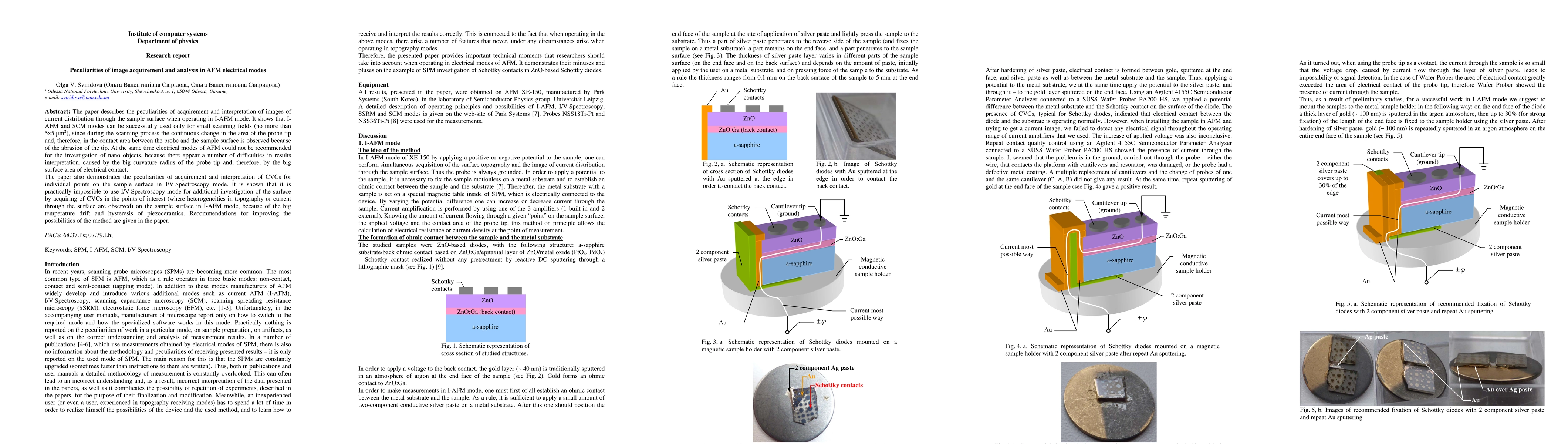 This paper investigates the challenges in acquiring and analyzing current distribution images using I-AFM mode, highlighting limitations due to tip abrasion and large contact area. It also discusses the impracticality of I/V Spectroscopy mode for detailed surface investigations due to significant temperature drift and hysteresis.