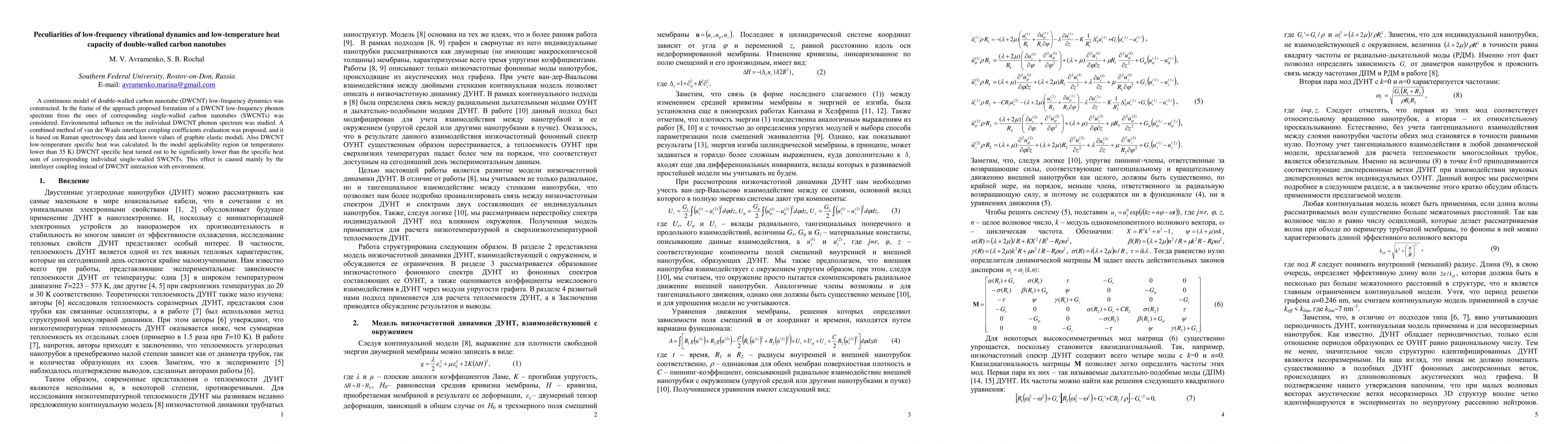 This paper constructs a continuous model for the low-frequency vibrational dynamics of double-walled carbon nanotubes (DWCNT) and explores their low-temperature heat capacity. The study reveals that DWCNT specific heat is significantly lower than the sum of individual single-walled carbon nanotubes (SWCNTs) due to interlayer coupling, rather than environmental influences.