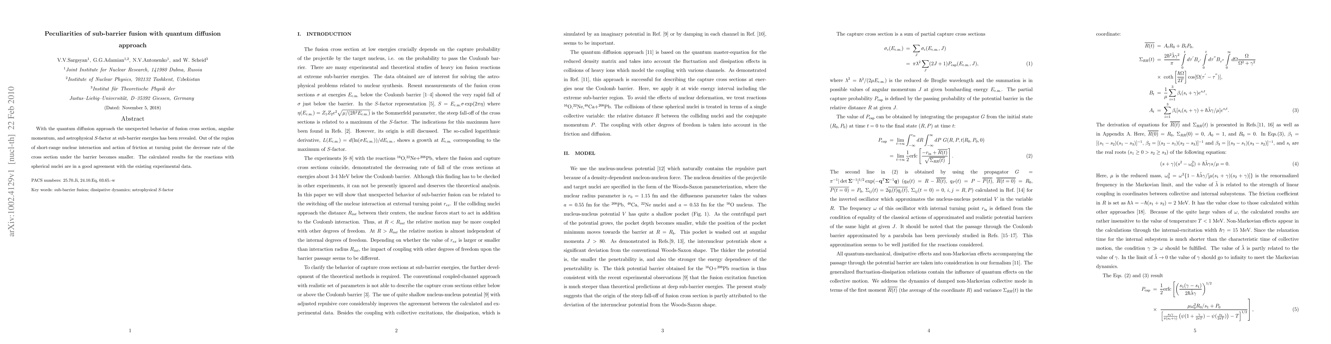 The research utilizes the quantum diffusion approach to uncover anomalous fusion behavior at sub-barrier energies, including fusion cross-section, angular momentum, and astrophysical S-factor. Findings align with experimental data for spherical nuclei reactions, revealing a diminished cross-section decrease rate beyond the short-range nuclear interaction region.