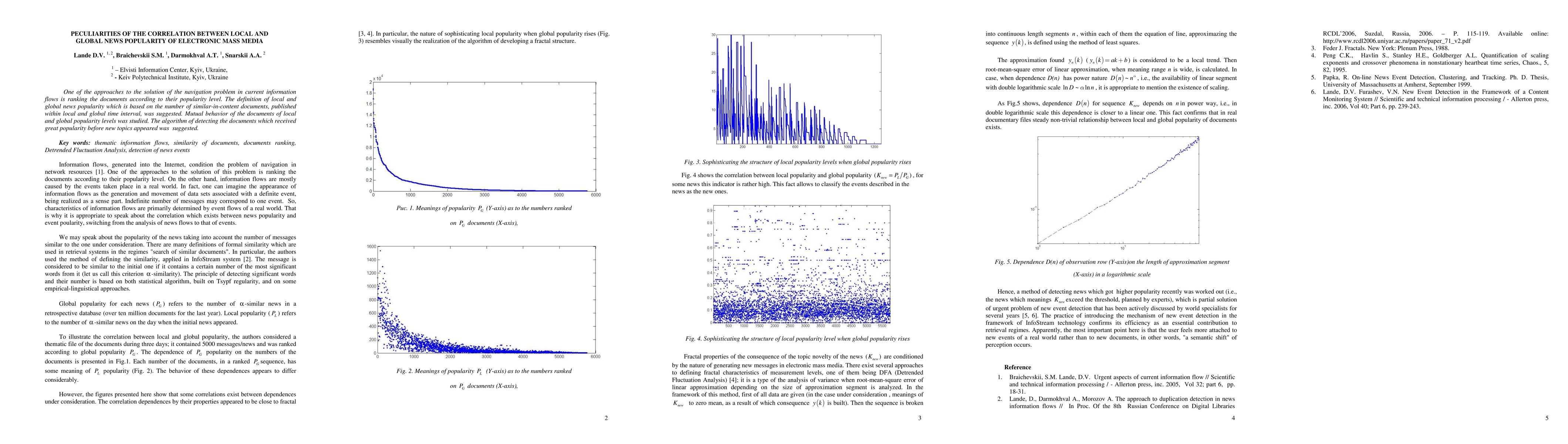 This paper explores the correlation between local and global news popularity in electronic mass media, proposing a method for ranking documents based on their popularity level. It introduces an algorithm to detect documents that gained significant popularity before new topics emerged, highlighting the interplay between local and global news trends.