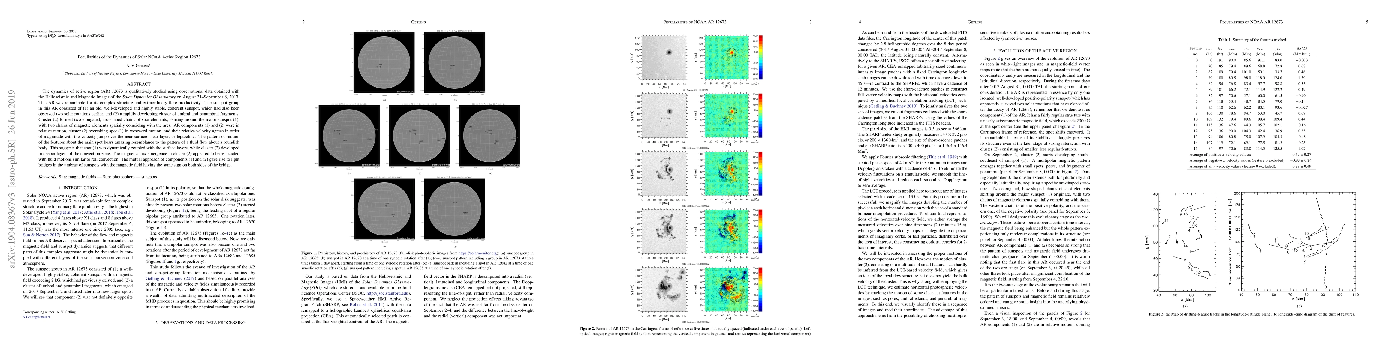 The dynamics of active region (AR) 12673 is qualitatively studied using observational data obtained with the Helioseismic and Magnetic Imager of the Solar Dynamics Observatory on August 31--September 8, 2017. This AR was remarkable for its complex structure and extraodinary flare productivity. The sunspot group in this AR consisted of (1) an old, well-developed and highly stable, coherent sunspot, which had also been observed two solar rotations earlier, and (2) a rapidly developing cluster of umbral and penumbral fragments. Cluster (2) formed two elongated, arc-shaped chains of spot elements, skirting around the major sunspot (1), with two chains of magnetic elements spatially coinciding with the arcs. AR components (1) and (2) were in relative motion, cluster (2) overtaking spot (1), and their relative velocity agrees in order of magnitude with the velocity jump over the near-surface shear layer, or leptocline. The pattern of motion of the features about the main spot bears amazing resemblance to the pattern of a fluid flow about a roundish body. This suggests that spot (1) was dynamically coupled with the surface layers, while cluster (2) developed in deeper layers of the convection zone. The magnetic-flux emergence in cluster (2) appeared to be associated with fluid motions similar to roll convection. The mutual approach of components (1) and (2) gave rise to lights bridges in the umbrae of sunspots with the magnetic field having the same sign on both sides of the bridge.