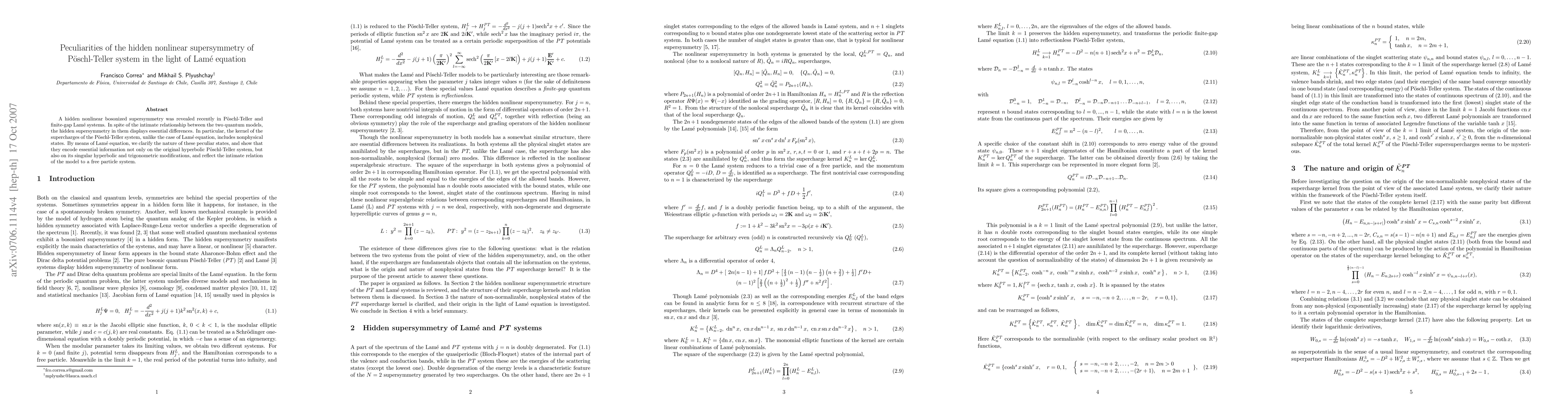 A hidden nonlinear bosonized supersymmetry was revealed recently in Poschl-Teller and finite-gap Lame systems. In spite of the intimate relationship between the two quantum models, the hidden supersymmetry in them displays essential differences. In particular, the kernel of the supercharges of the Poschl-Teller system, unlike the case of Lame equation, includes nonphysical states. By means of Lame equation, we clarify the nature of these peculiar states, and show that they encode essential information not only on the original hyperbolic Poschl-Teller system, but also on its singular hyperbolic and trigonometric modifications, and reflect the intimate relation of the model to a free particle system.