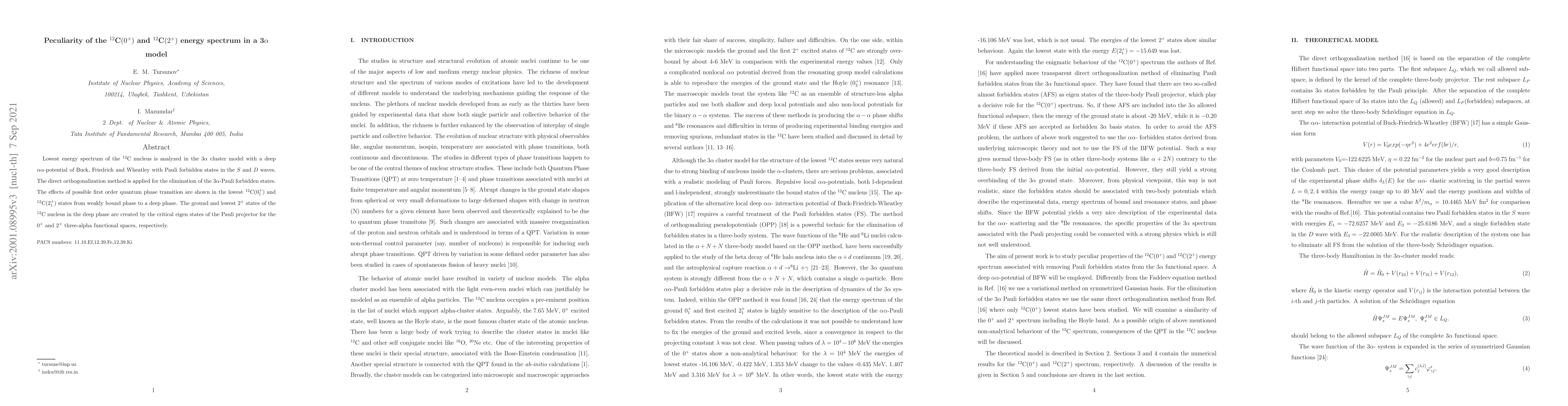This paper analyzes the lowest energy spectrum of $^{12}$C using a 3$\alpha$ cluster model, revealing a first-order quantum phase transition affecting the $^{12}$C($0_1^+$) and $^{12}$C($2_1^+$) states, transitioning from a weakly bound to a deep phase. The study employs the direct orthogonalization method to manage Pauli forbidden states and identifies critical eigenstates for the ground and lowest $2^+$ states.