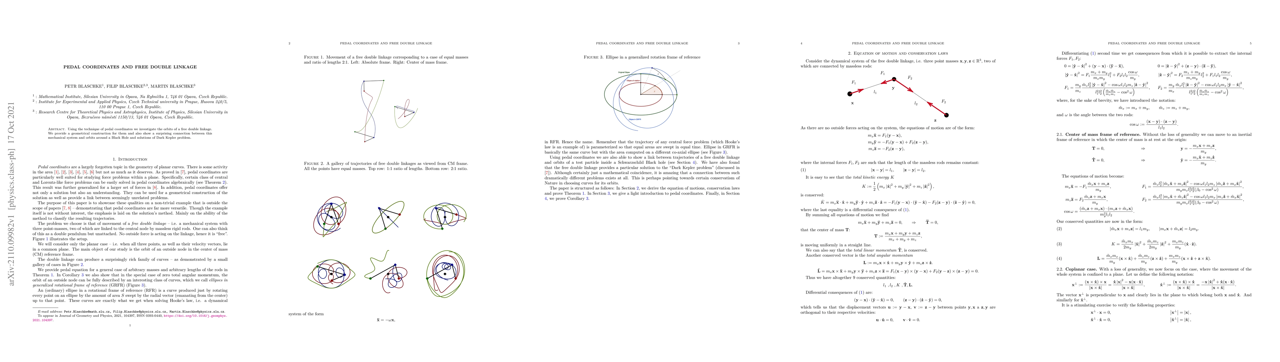 Using the technique of pedal coordinates we investigate the orbits of a free double linkage. We provide a geometrical construction for them and also show a surprising connection between this mechanical system and orbits around a Black Hole and solutions of Dark Kepler problem.