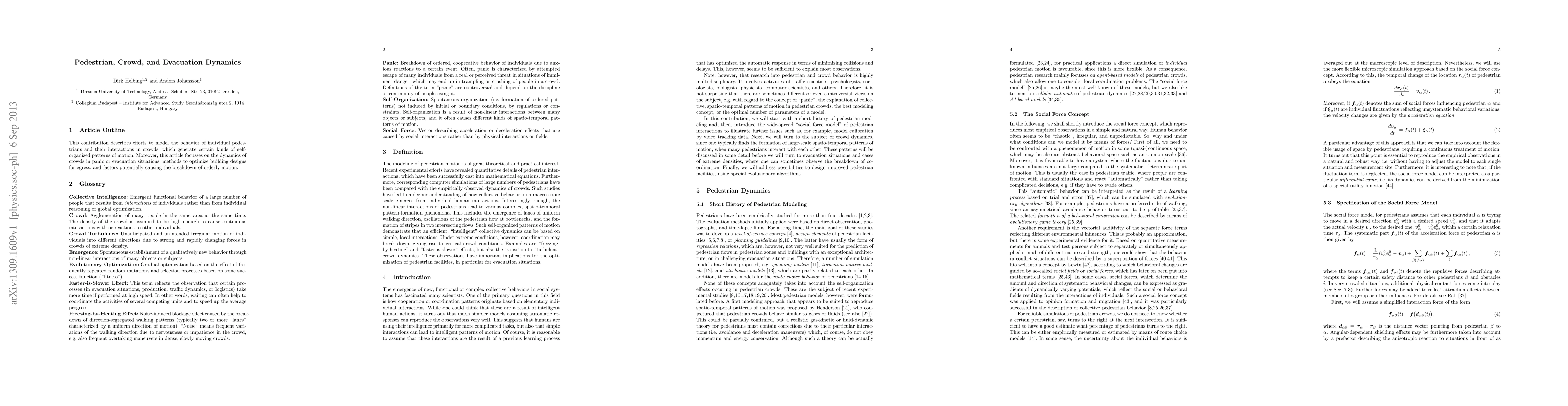 It explores self-organized patterns of motion, panic situations, and methods for improving crowd safety through better building designs.