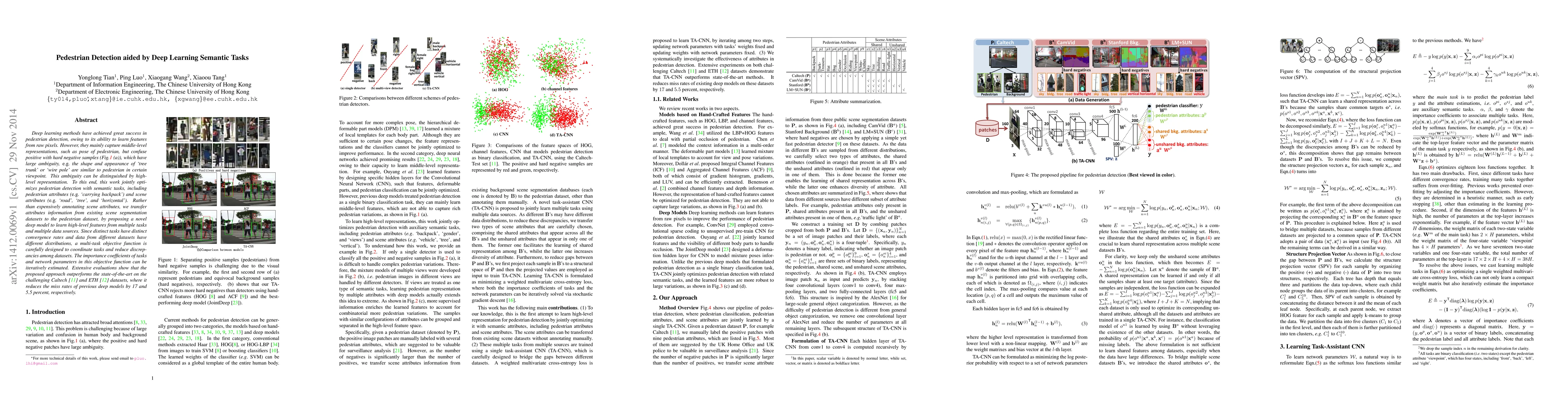 This research paper improves pedestrian detection using deep learning by combining it with semantic tasks like attributes of pedestrians and scenes, achieving better results on challenging datasets.