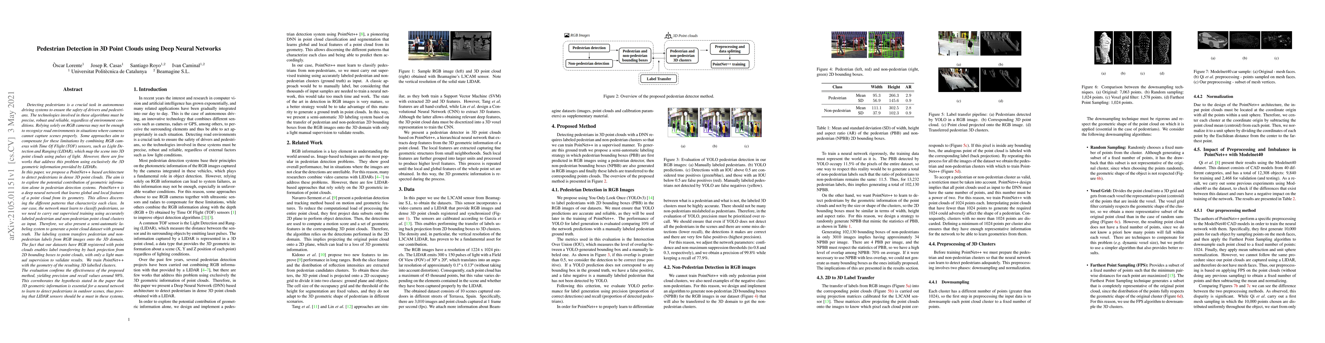 This paper proposes a PointNet++ architecture for detecting pedestrians using exclusively 3D point clouds from LIDARs. It introduces a semi-automatic labeling system to transfer labels from RGB images to the 3D domain, achieving high precision and recall of around 98% in pedestrian detection.