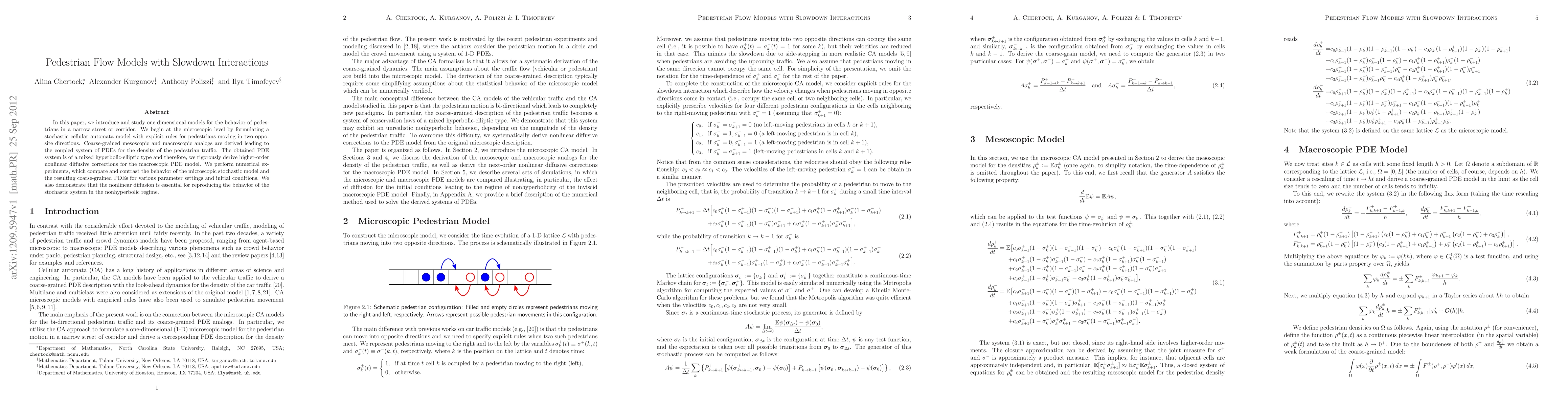 Researchers developed a one-dimensional model to study pedestrian flow in narrow streets, using both microscopic stochastic models and macroscopic PDEs with nonlinear diffusion corrections, finding the latter essential for reproducing behavior in nonhyperbolic regimes.