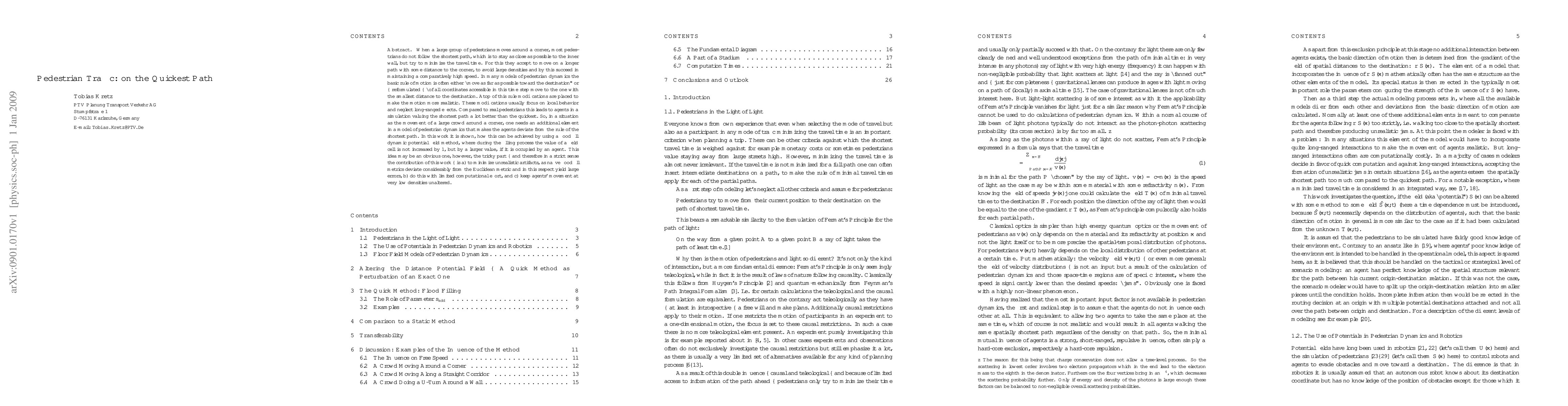 When a large group of pedestrians moves around a corner, most pedestrians do not follow the shortest path, which is to stay as close as possible to the inner wall, but try to minimize the travel time. For this they accept to move on a longer path with some distance to the corner, to avoid large densities and by this succeed in maintaining a comparatively high speed. In many models of pedestrian dynamics the basic rule of motion is often either "move as far as possible toward the destination" or - reformulated - "of all coordinates accessible in this time step move to the one with the smallest distance to the destination". Atop of this rule modifications are placed to make the motion more realistic. These modifications usually focus on local behavior and neglect long-ranged effects. Compared to real pedestrians this leads to agents in a simulation valuing the shortest path a lot better than the quickest. So, in a situation as the movement of a large crowd around a corner, one needs an additional element in a model of pedestrian dynamics that makes the agents deviate from the rule of the shortest path. In this work it is shown, how this can be achieved by using a flood fill dynamic potential field method, where during the filling process the value of a field cell is not increased by 1, but by a larger value, if it is occupied by an agent. This idea may be an obvious one, however, the tricky part - and therefore in a strict sense the contribution of this work - is a) to minimize unrealistic artifacts, as naive flood fill metrics deviate considerably from the Euclidean metric and in this respect yield large errors, b) do this with limited computational effort, and c) keep agents' movement at very low densities unaltered.