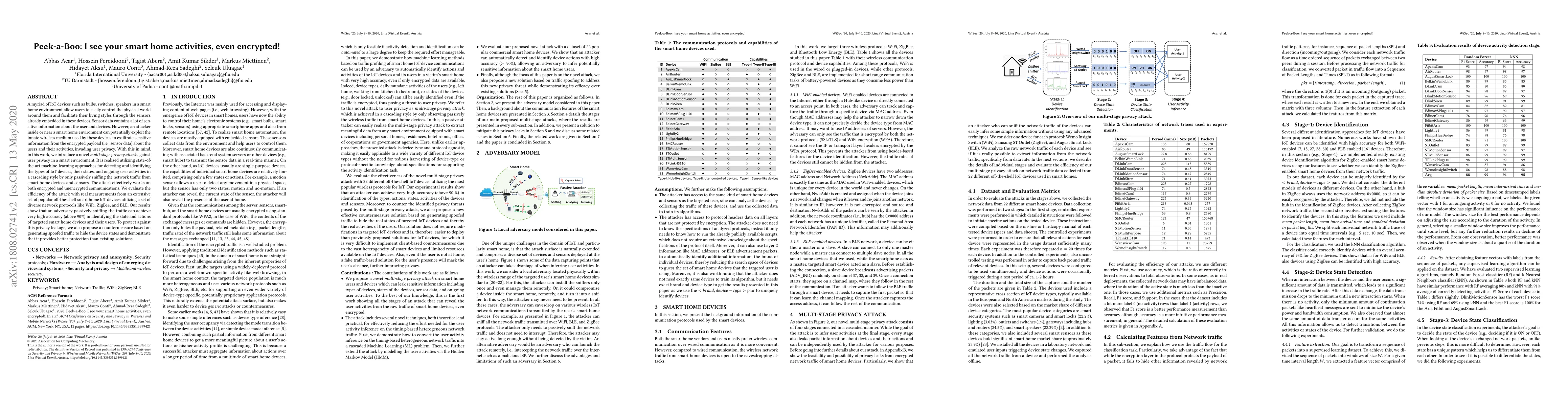 This paper presents a novel multi-stage privacy attack exploiting wireless communication in smart homes to infer encrypted and unencrypted sensor data, achieving high accuracy in identifying device states and user activities. It also proposes a countermeasure using spoofed traffic to enhance privacy protection.