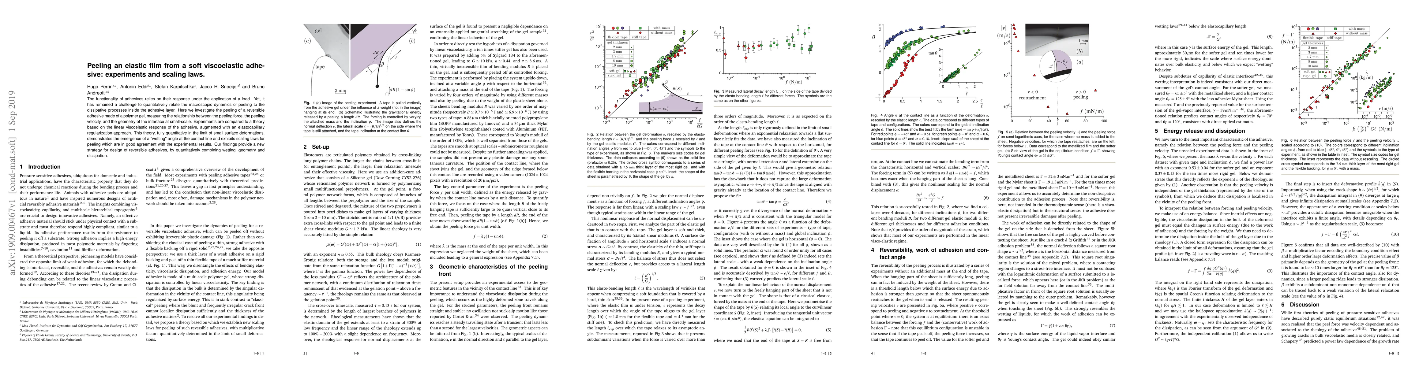 The functionality of adhesives relies on their response under the application of a load. Yet, it has remained a challenge to quantitatively relate the macroscopic dynamics of peeling to the dissipative processes inside the adhesive layer. Here we investigate the peeling of a reversible adhesive made of a polymer gel, measuring the relationship between the peeling force, the peeling velocity, and the geometry of the interface at small-scale. Experiments are compared to a theory based on the linear viscoelastic response of the adhesive, augmented with an elastocapillary regularization approach. This theory, fully quantitative in the limit of small surface deformations, demonstrates the emergence of a "wetting" angle at the contact line and exhibits scaling laws for peeling which are in good agreement with the experimental results. Our findings provide a new strategy for design of reversible adhesives, by quantitatively combining wetting, geometry and dissipation.