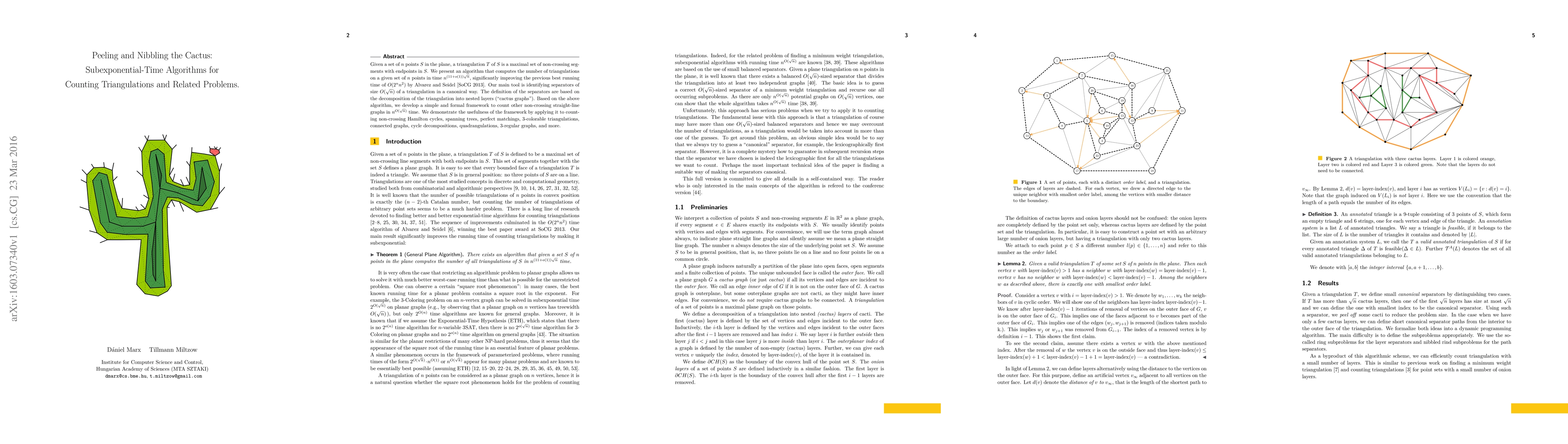 This paper presents a subexponential-time algorithm for counting triangulations of a set of $n$ points, achieving a running time of $n^{(11+ o(1))\sqrt{n}}$. The method involves identifying separators of size $O(\sqrt{n})$ and decomposes triangulations into nested layers or "cactus graphs." The framework is also extended to count various other non-crossing straight-line graphs efficiently.
