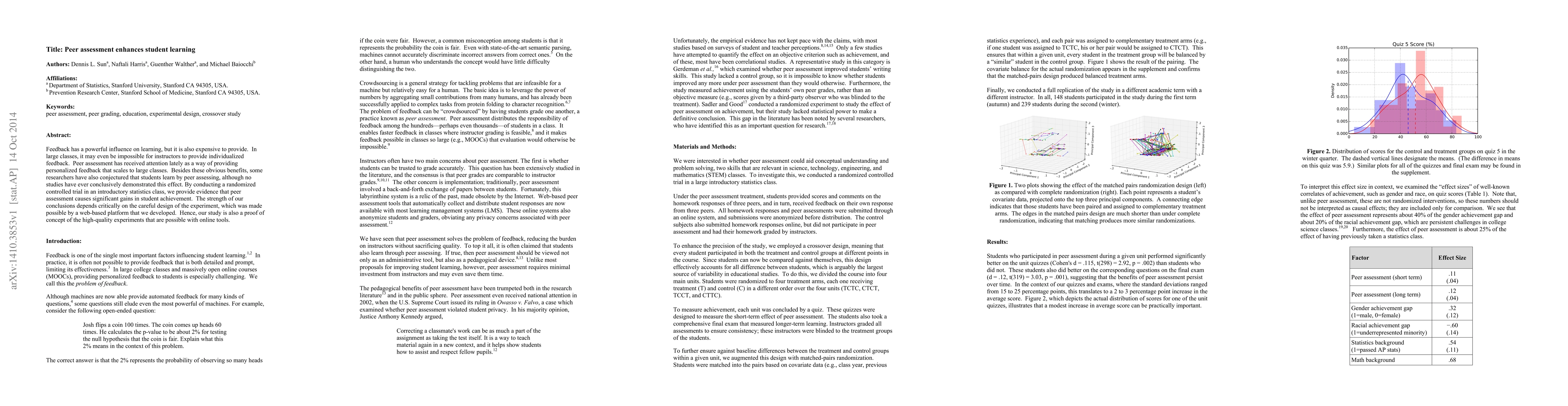 This research demonstrates that peer assessment can provide personalized feedback that scales to large classes, leading to substantial gains in student achievement.