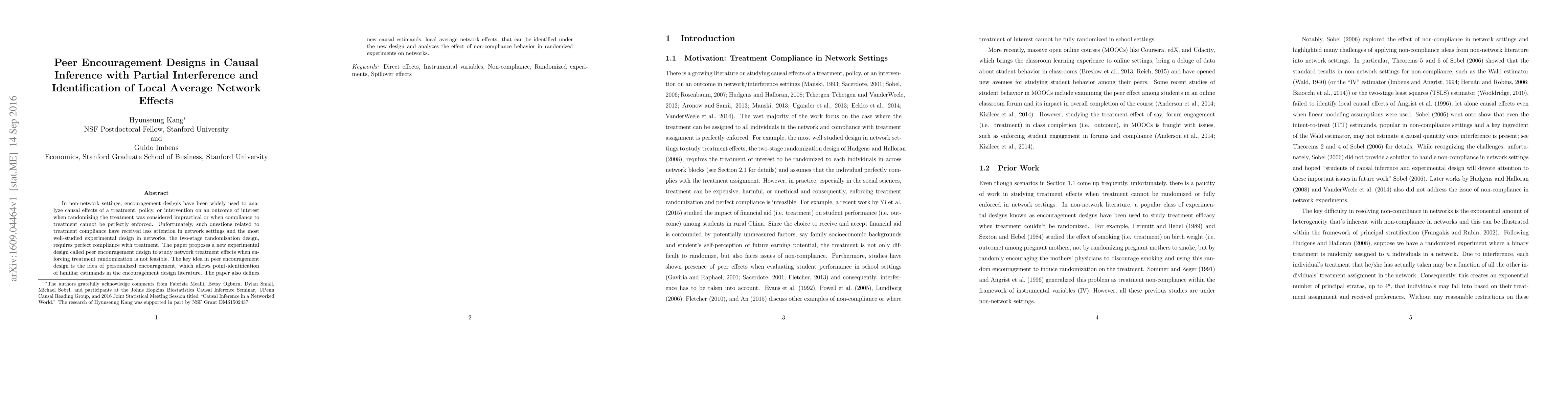 A new experimental design called peer encouragement design is proposed to study network treatment effects when enforcing treatment randomization is not feasible, allowing for identification of local average network effects.