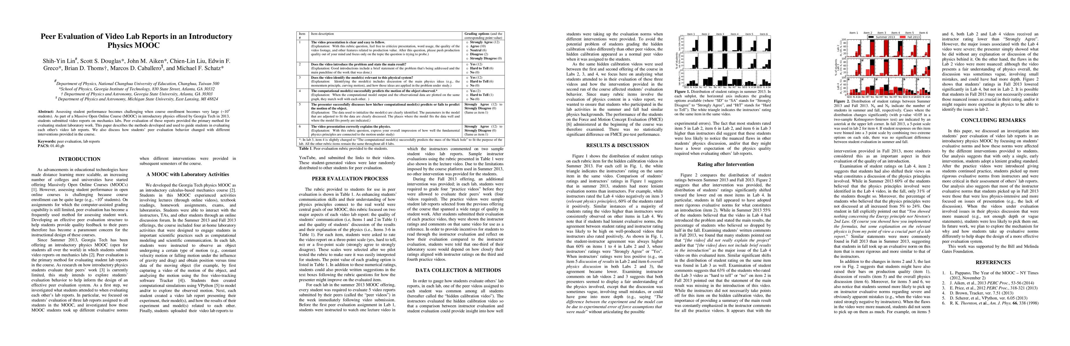 This paper examines the peer evaluation of video lab reports in a large introductory physics MOOC, highlighting the methods developed to guide students and analyzes how various course interventions influenced students' peer evaluation behaviors.