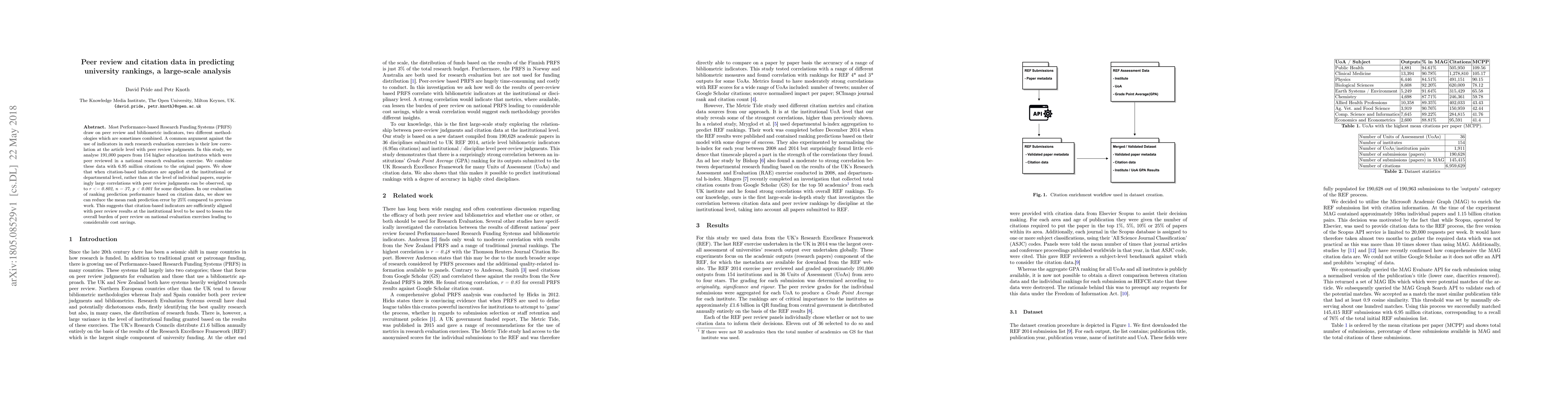 This study combines peer review data from 191,000 papers and 6.95 million citations to show that citation-based indicators correlate strongly with peer review judgments at the institutional level, up to r = 0.802, suggesting they can reduce the burden and costs of peer review in university rankings.