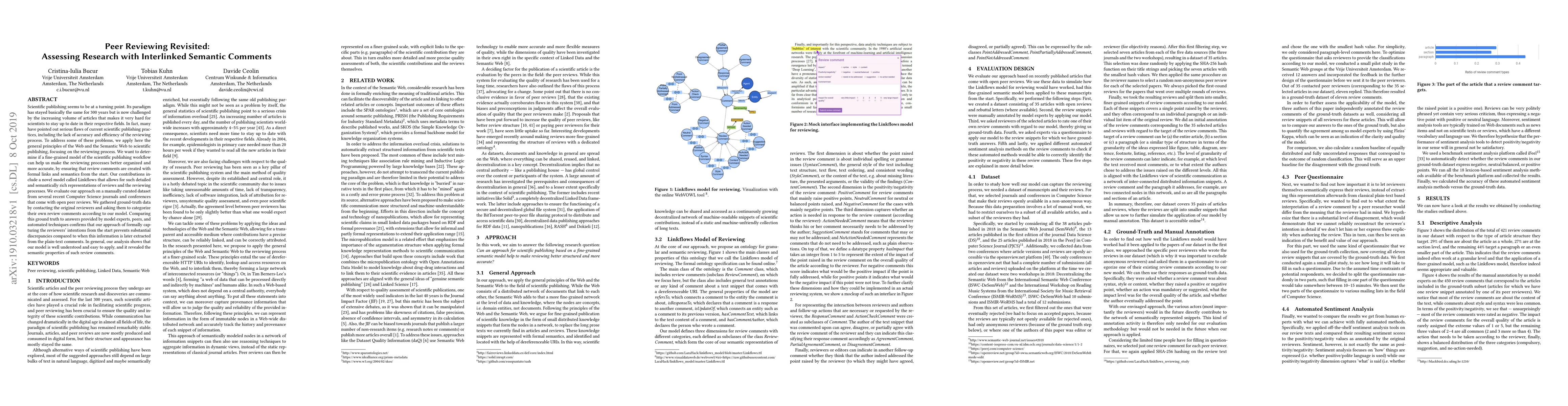 Scientific publishing seems to be at a turning point. Its paradigm has stayed basically the same for 300 years but is now challenged by the increasing volume of articles that makes it very hard for scientists to stay up to date in their respective fields. In fact, many have pointed out serious flaws of current scientific publishing practices, including the lack of accuracy and efficiency of the reviewing process. To address some of these problems, we apply here the general principles of the Web and the Semantic Web to scientific publishing, focusing on the reviewing process. We want to determine if a fine-grained model of the scientific publishing workflow can help us make the reviewing processes better organized and more accurate, by ensuring that review comments are created with formal links and semantics from the start. Our contributions include a novel model called Linkflows that allows for such detailed and semantically rich representations of reviews and the reviewing processes. We evaluate our approach on a manually curated dataset from several recent Computer Science journals and conferences that come with open peer reviews. We gathered ground-truth data by contacting the original reviewers and asking them to categorize their own review comments according to our model. Comparing this ground truth to answers provided by model experts, peers, and automated techniques confirms that our approach of formally capturing the reviewers' intentions from the start prevents substantial discrepancies compared to when this information is later extracted from the plain-text comments. In general, our analysis shows that our model is well understood and easy to apply, and it revealed the semantic properties of such review comments.