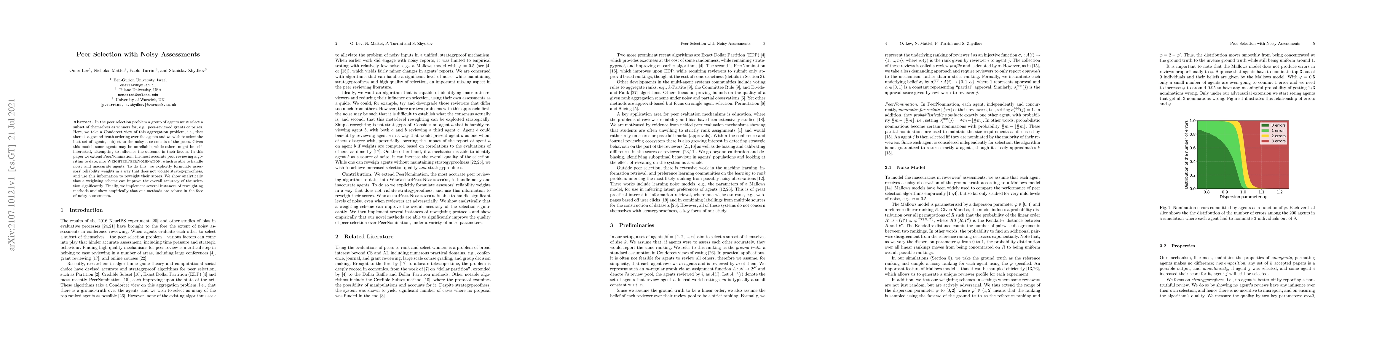 In the peer selection problem a group of agents must select a subset of themselves as winners for, e.g., peer-reviewed grants or prizes. Here, we take a Condorcet view of this aggregation problem, i.e., that there is a ground-truth ordering over the agents and we wish to select the best set of agents, subject to the noisy assessments of the peers. Given this model, some agents may be unreliable, while others might be self-interested, attempting to influence the outcome in their favour. In this paper we extend PeerNomination, the most accurate peer reviewing algorithm to date, into WeightedPeerNomination, which is able to handle noisy and inaccurate agents. To do this, we explicitly formulate assessors' reliability weights in a way that does not violate strategyproofness, and use this information to reweight their scores. We show analytically that a weighting scheme can improve the overall accuracy of the selection significantly. Finally, we implement several instances of reweighting methods and show empirically that our methods are robust in the face of noisy assessments.
