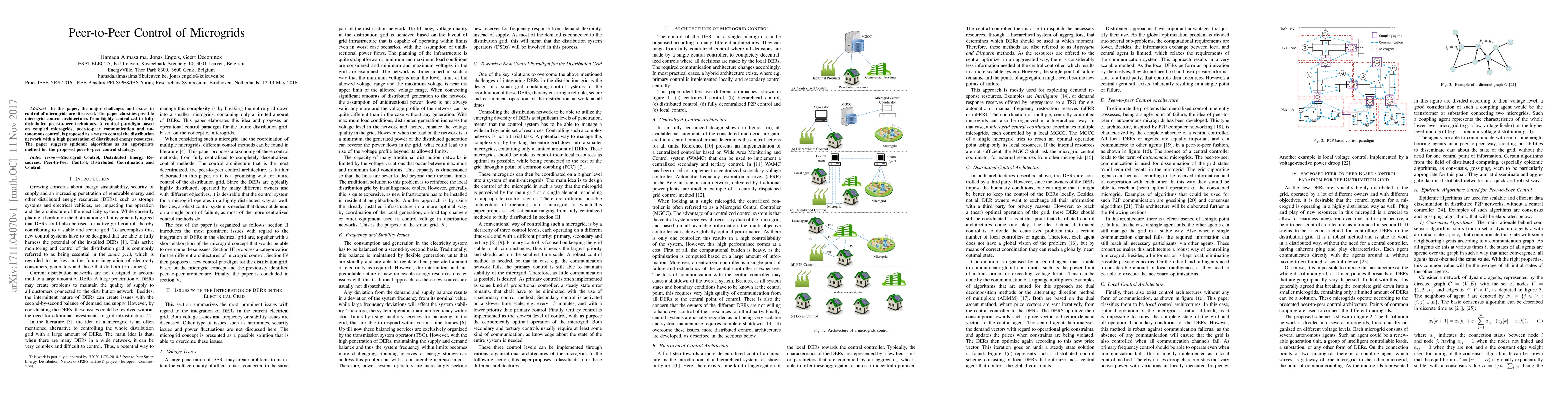 This paper proposes a peer-to-peer control paradigm for microgrids with high penetration of Distributed Energy Resources, classifying control methods from centralized to distributed approaches and discussing suitable algorithms for the proposed strategy.